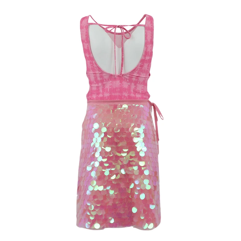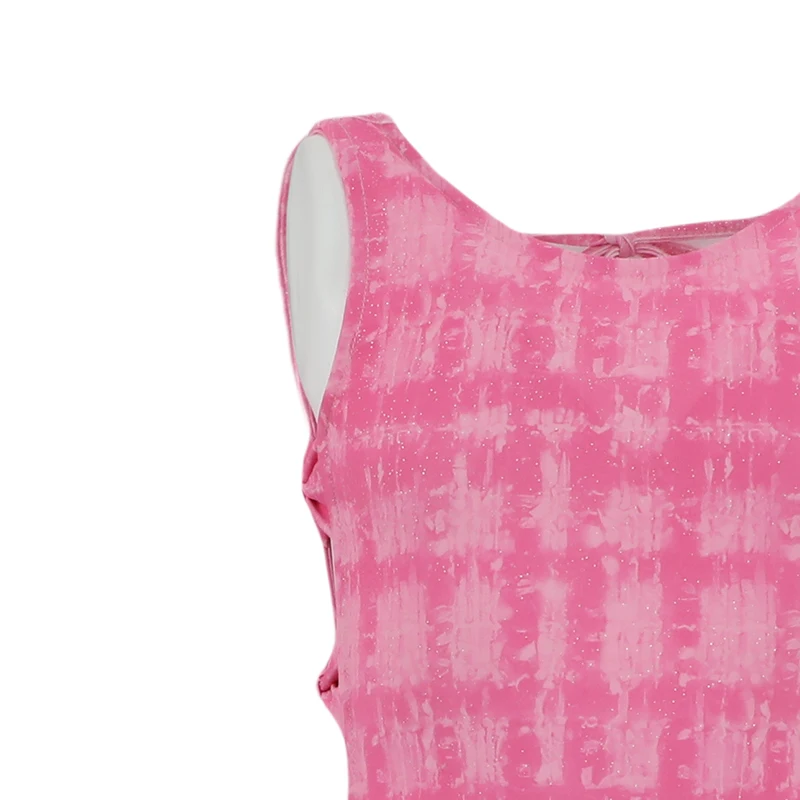 Red Textured Sleeveless Girls Party Dress O-Neck Sequin Open Back Tie Design Children's Casual Festive Dress
