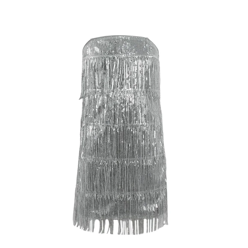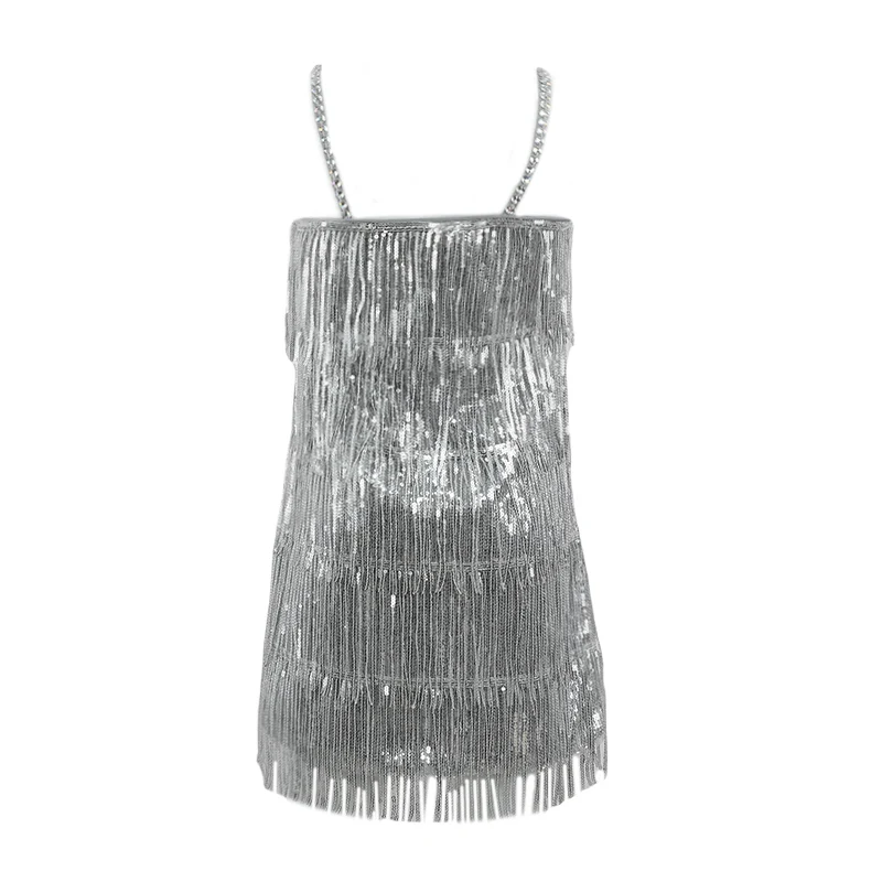 Customizable Fashion A-Line Dress Evening Party Dress Backless Halter Tassel Girl Sequin Dress