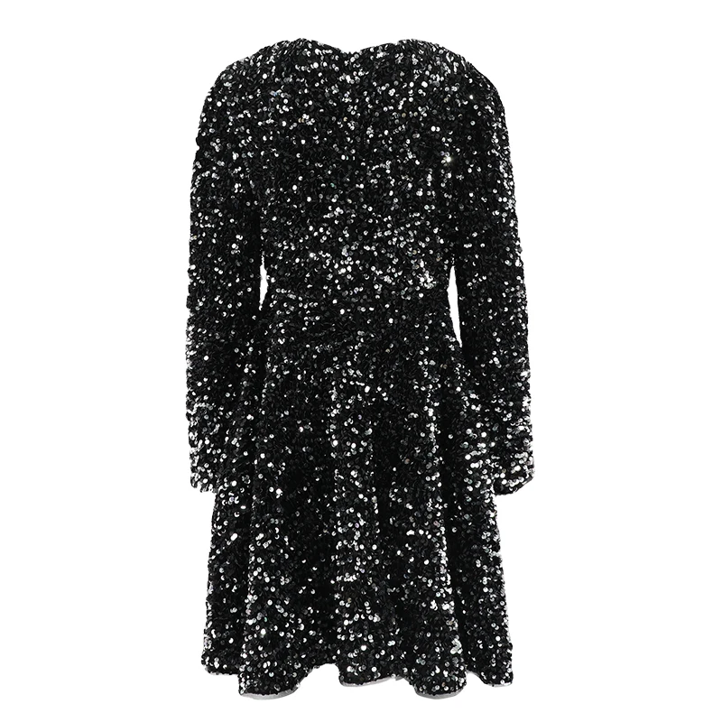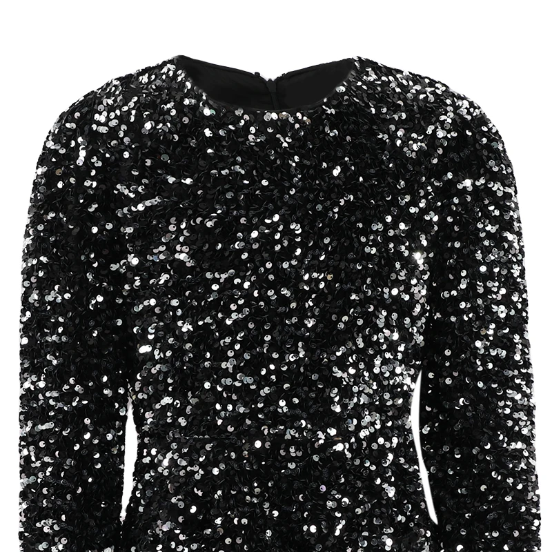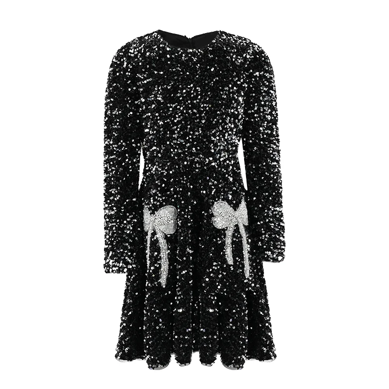 Customizable Preppy Style Girls Winter Dress O-Neck Collar Sequin Lace Decoration Print Kids Clothing