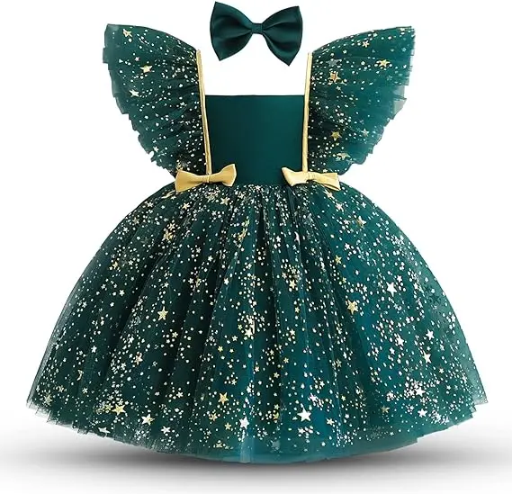 Wholesale High Quality Flying Sleeve Tutu Dresses Printing Star Elegant Princess Dress for 2-14T Girl