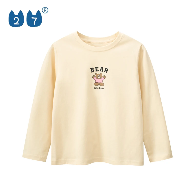 Children's Long Sleeve Top Apparel Customizable 230g Cotton Basic Shirt Layering Tee Plain Colors OEM