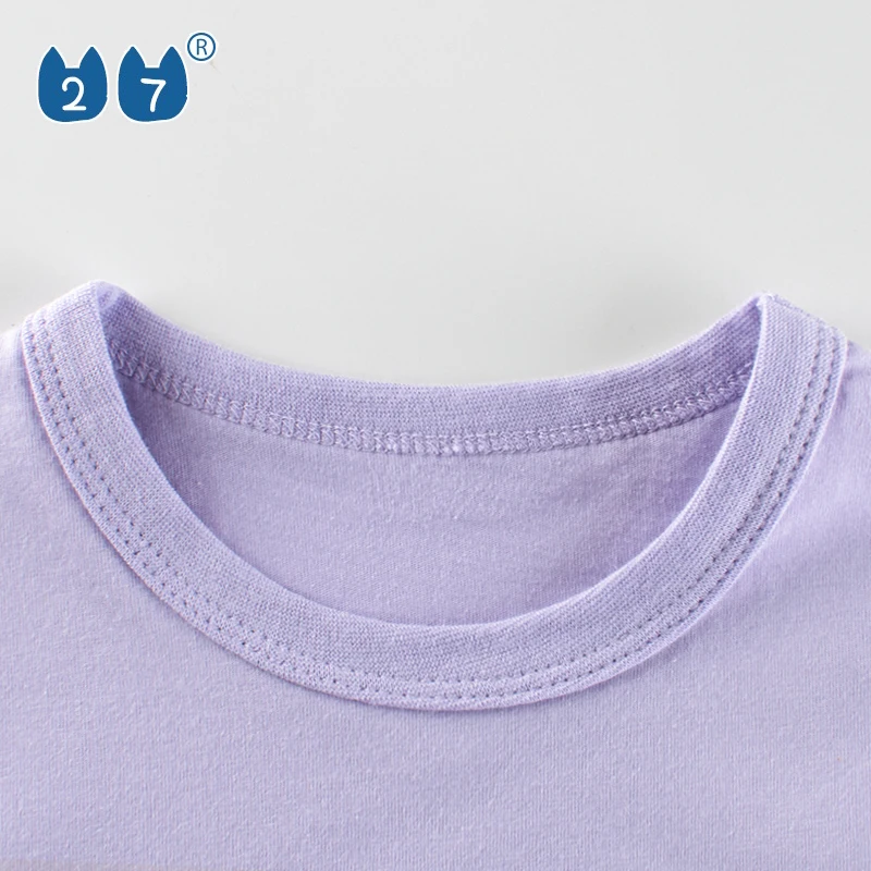Children's Long Sleeve Top Apparel Customizable 230g Cotton Basic Shirt Layering Tee Plain Colors OEM