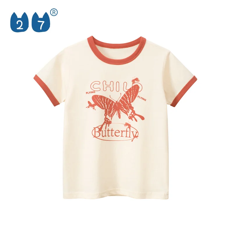100% Cotton Knitted Fabric 1-9Years Old Butterfly Cartoon Baby Girl T Shirt
