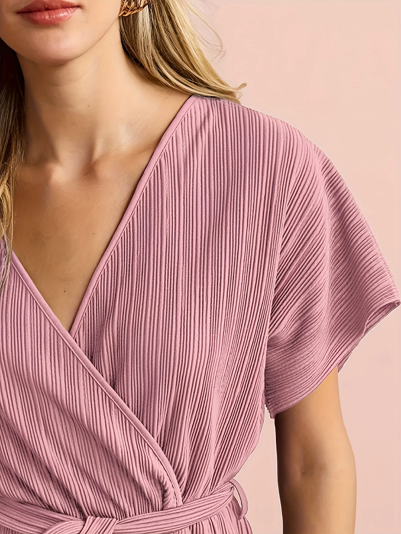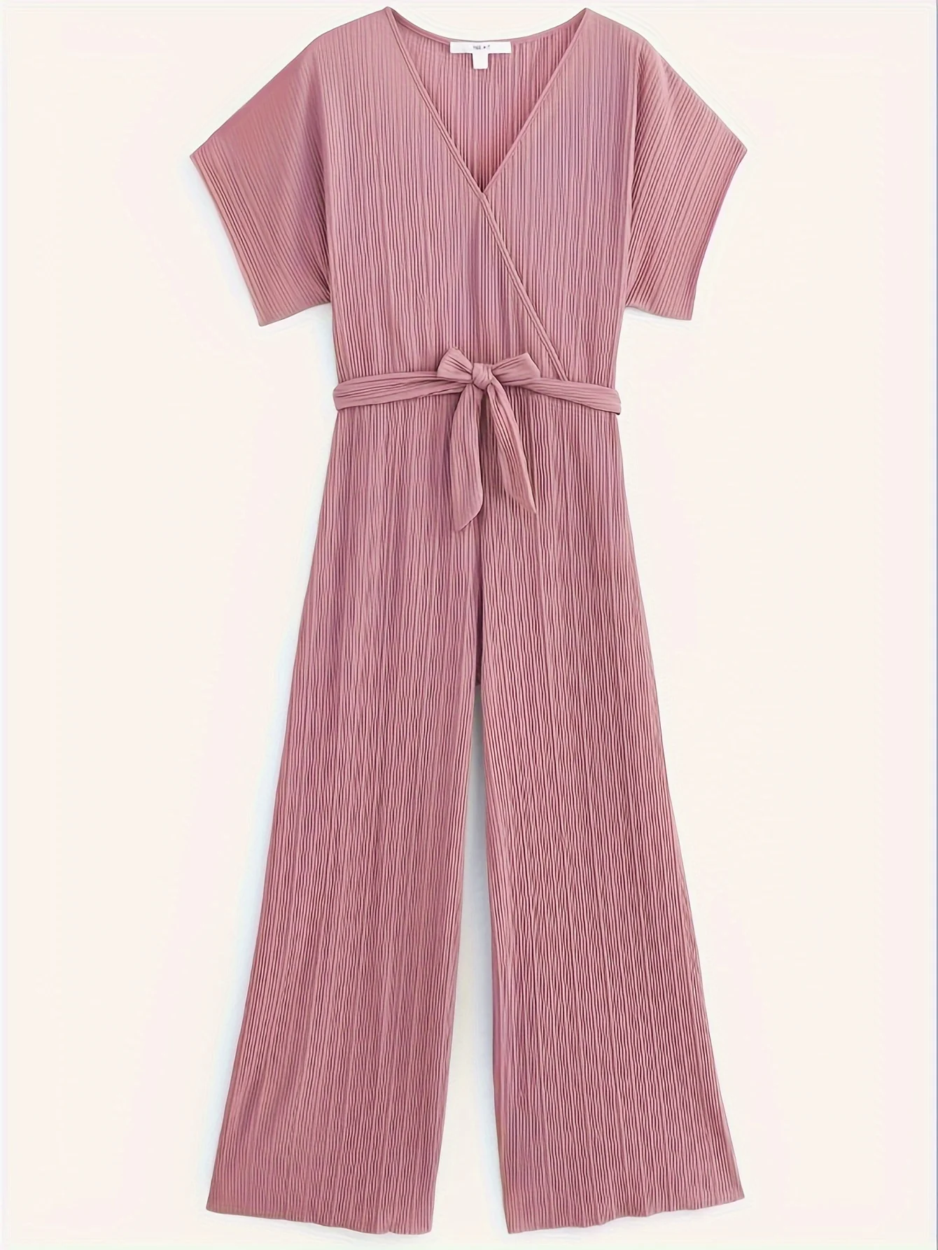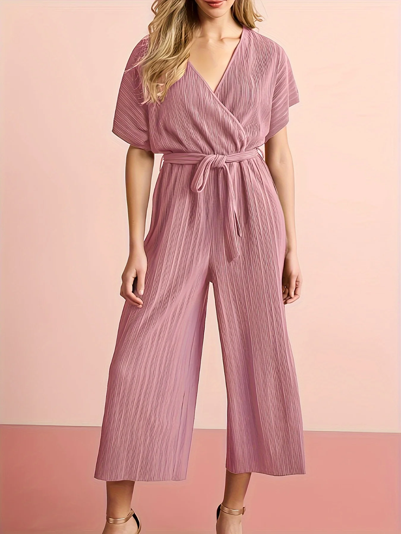 Elegant Women's Casual Pink Jumpsuit Solid Color Loose Trousers Fresh and Stylish Playsuit