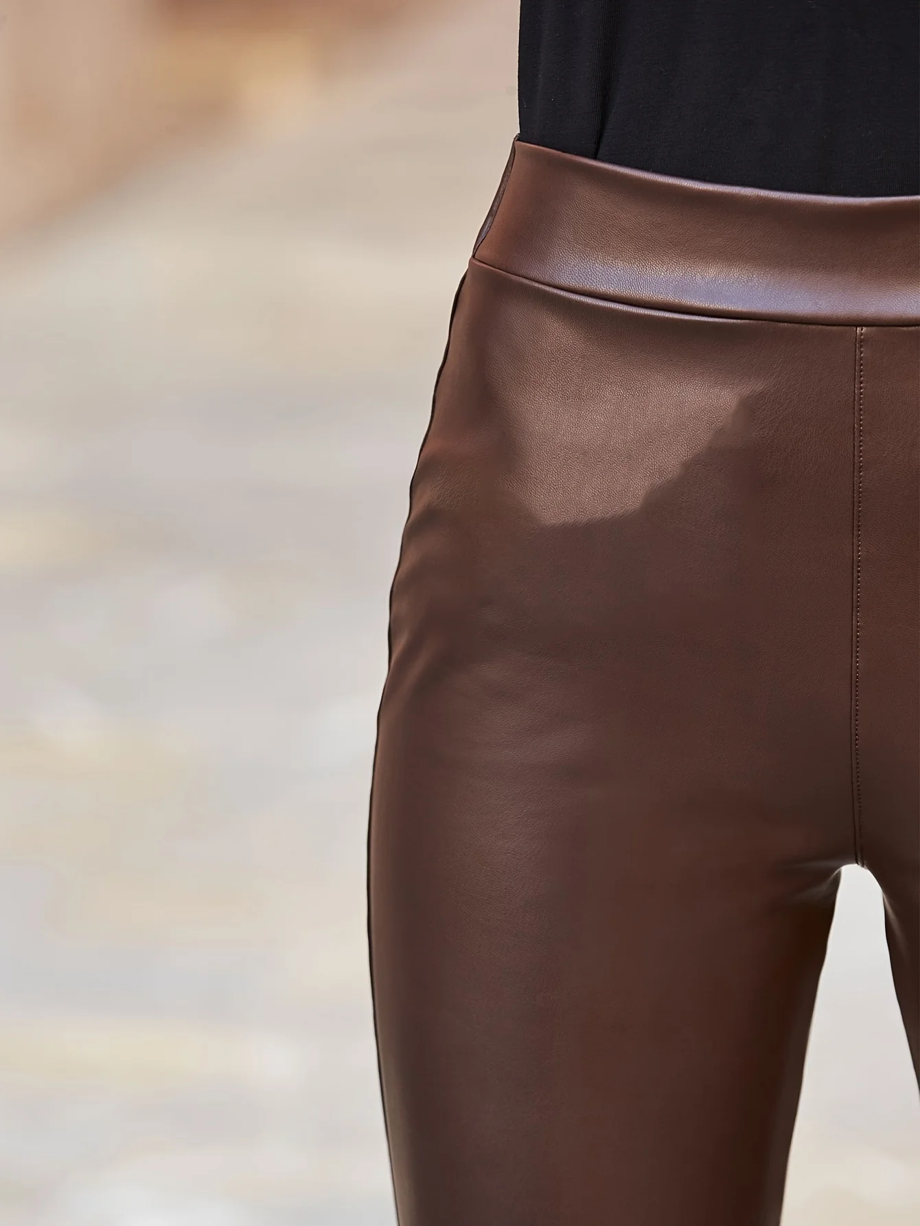 Reddish Brown Slim Summer Tights Versatile High-Waist PU Pure Environmentally Friendly Artificial Leather