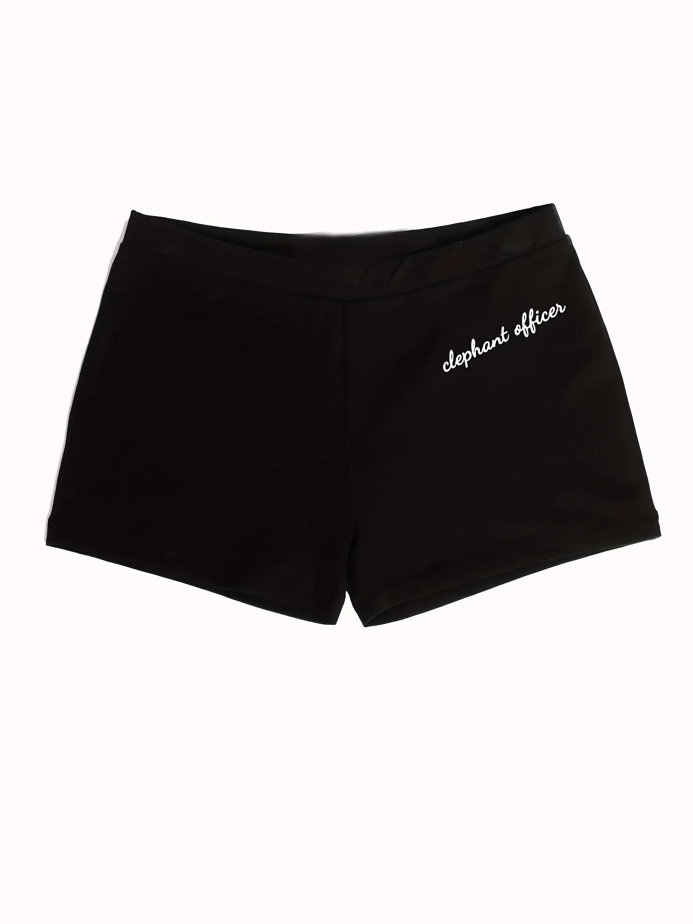 Women's Black Classic Sports Elastic Vest Top and Above Knee Hot Pants Set Belly-Baring Design