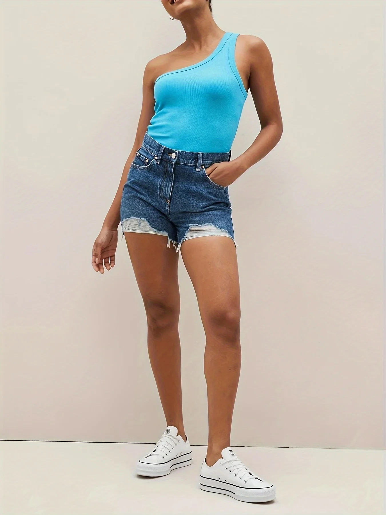 New Women's Fashion Oblique Shoulder Long Vest Sky Blue Breathable Velvet Casual Style Tank Tops