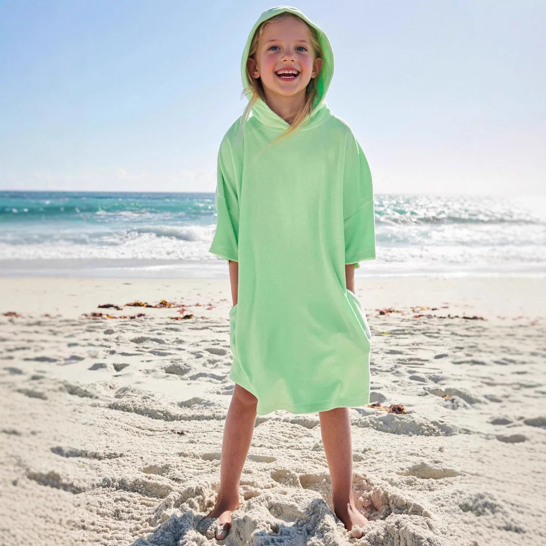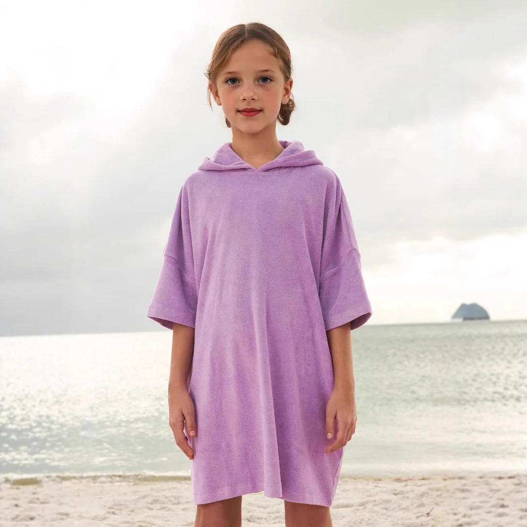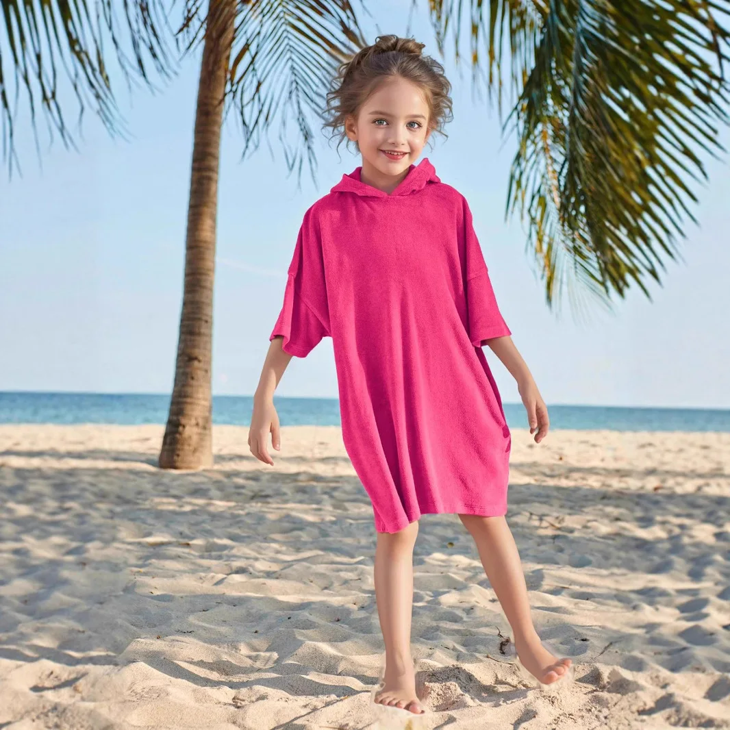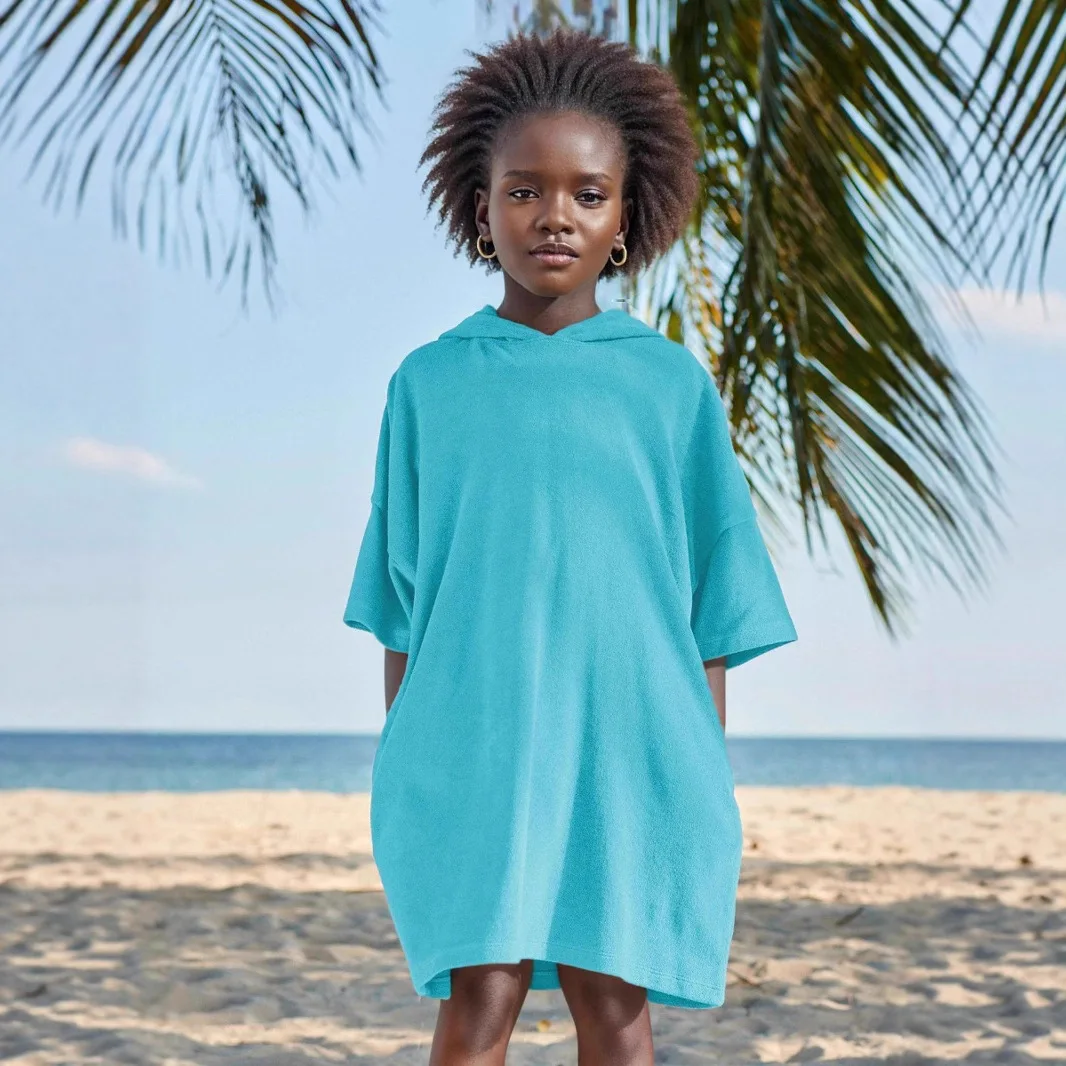 Fashionable Large Size Girls Hoodie with Towel Hood Solid Color Pullover for Children Loose Version Apparel