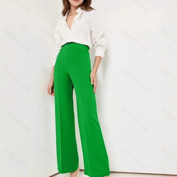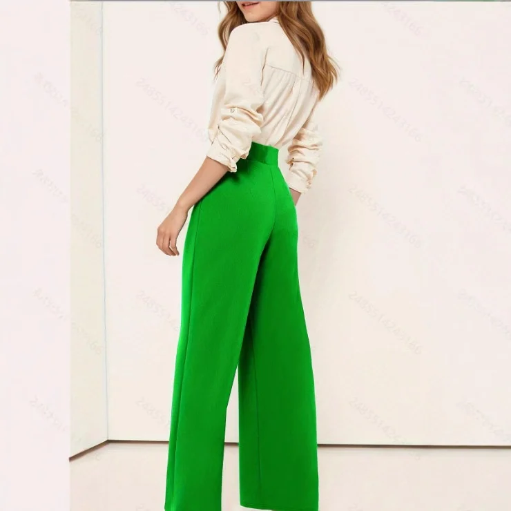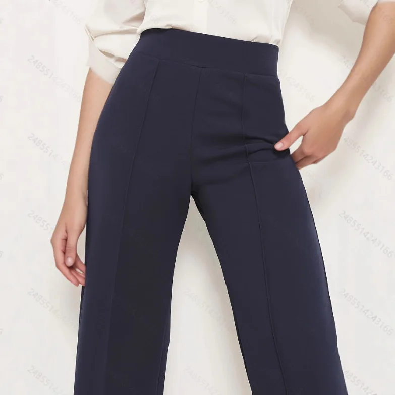 Casual Summer Stretch Wide Leg Pants for Teenage Girls High Waist Easy Matching Solid Color Elastic Waist Loose Fit Flat Front