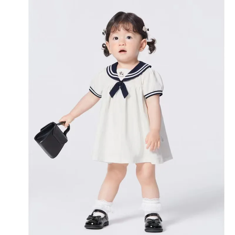 Girls Two Piece Outfit Customizable Cute T Shirt with 3D Bear Embroidery and Lace Trim Skirt Summer Apparel