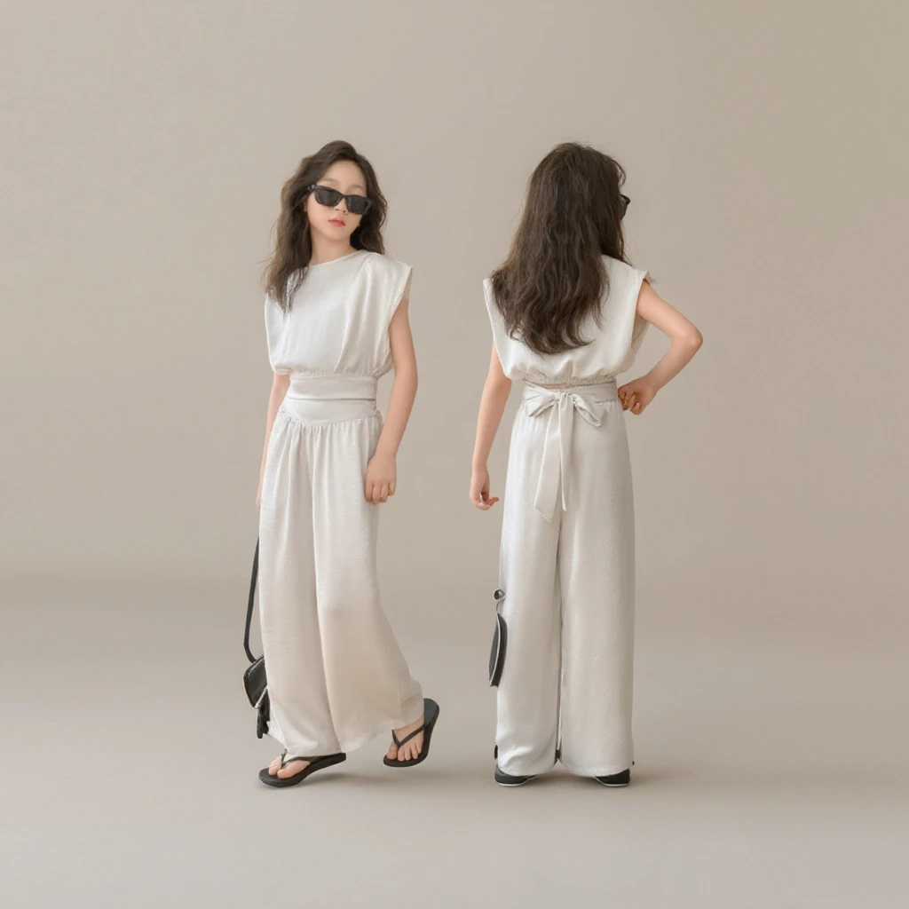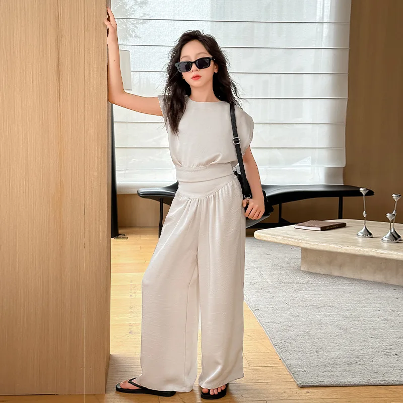 Korean Stylish Summer Kids 2pcs Suits Sleeveless Top+Pants Fashion Teenagers Girls Clothes Sets Clothes for Kids