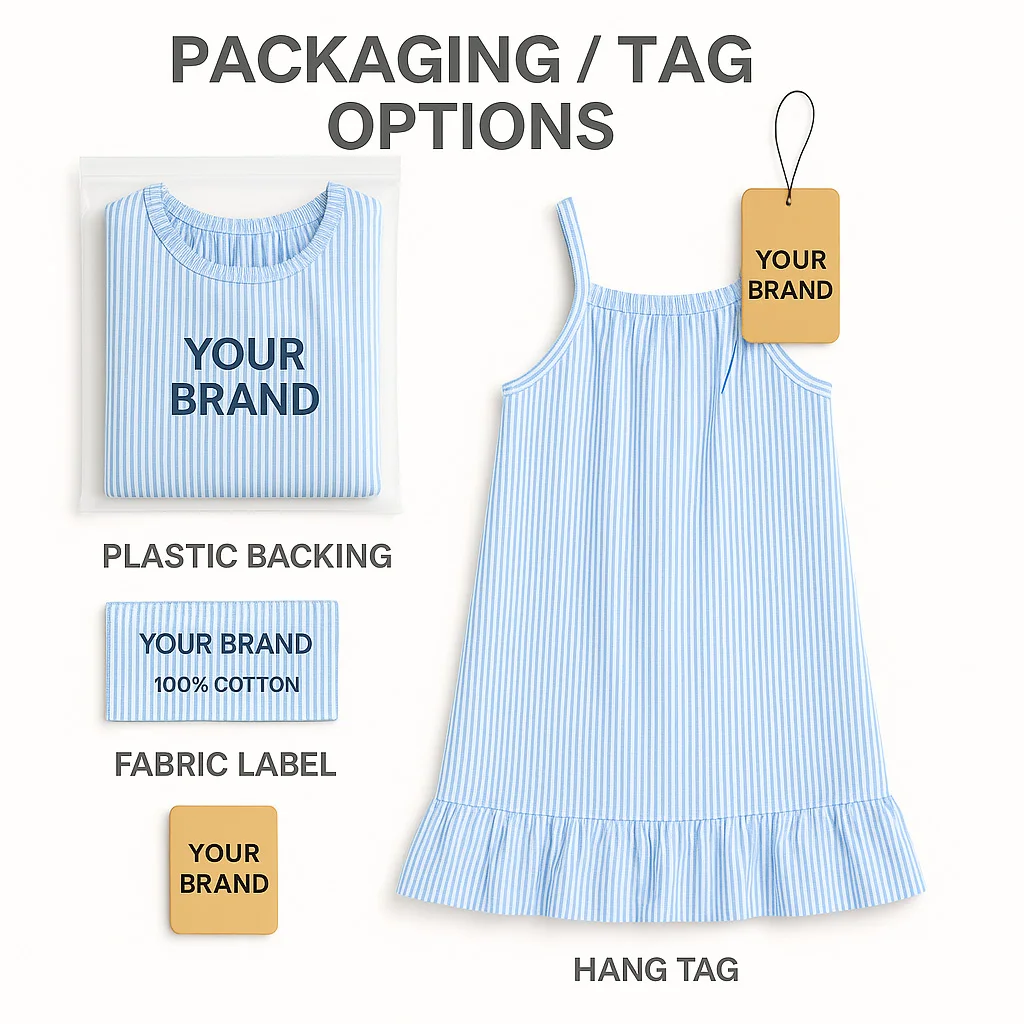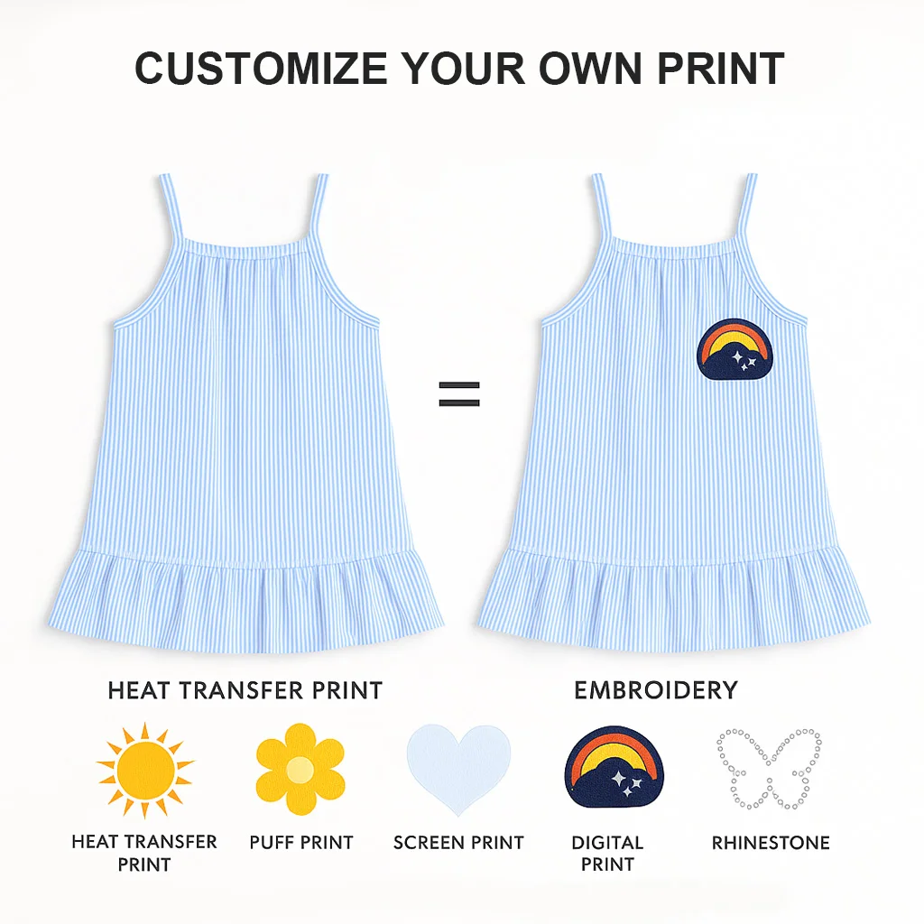 Wholesale Kids Blue Pinstripe Dress 100% Cotton Girls Summer Dress Sleeveless Ruffle Hem Sundress OEM ODM Casual Summer Outfit
