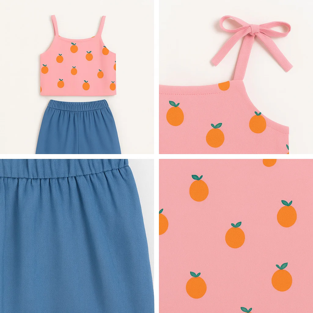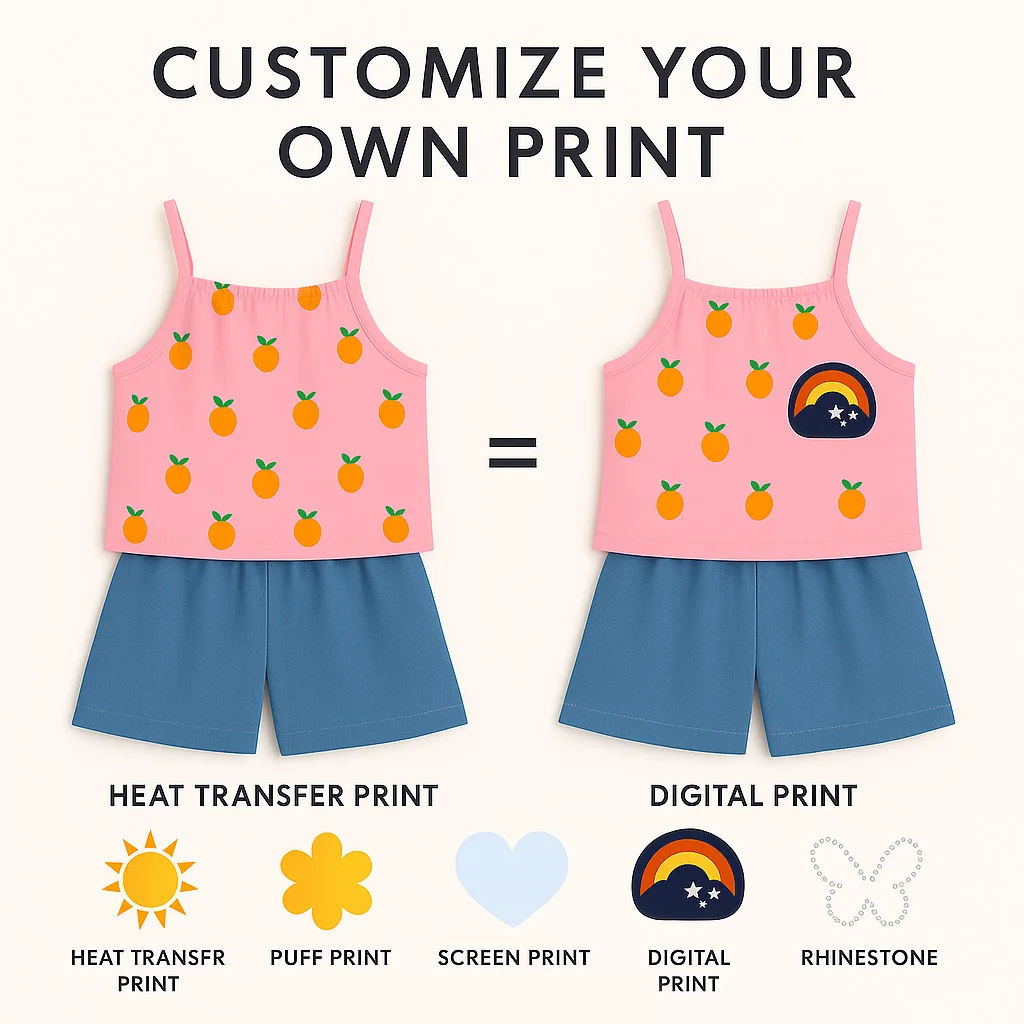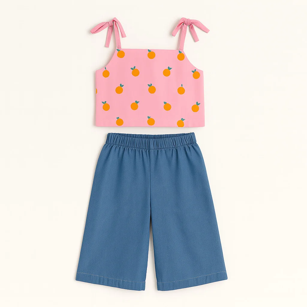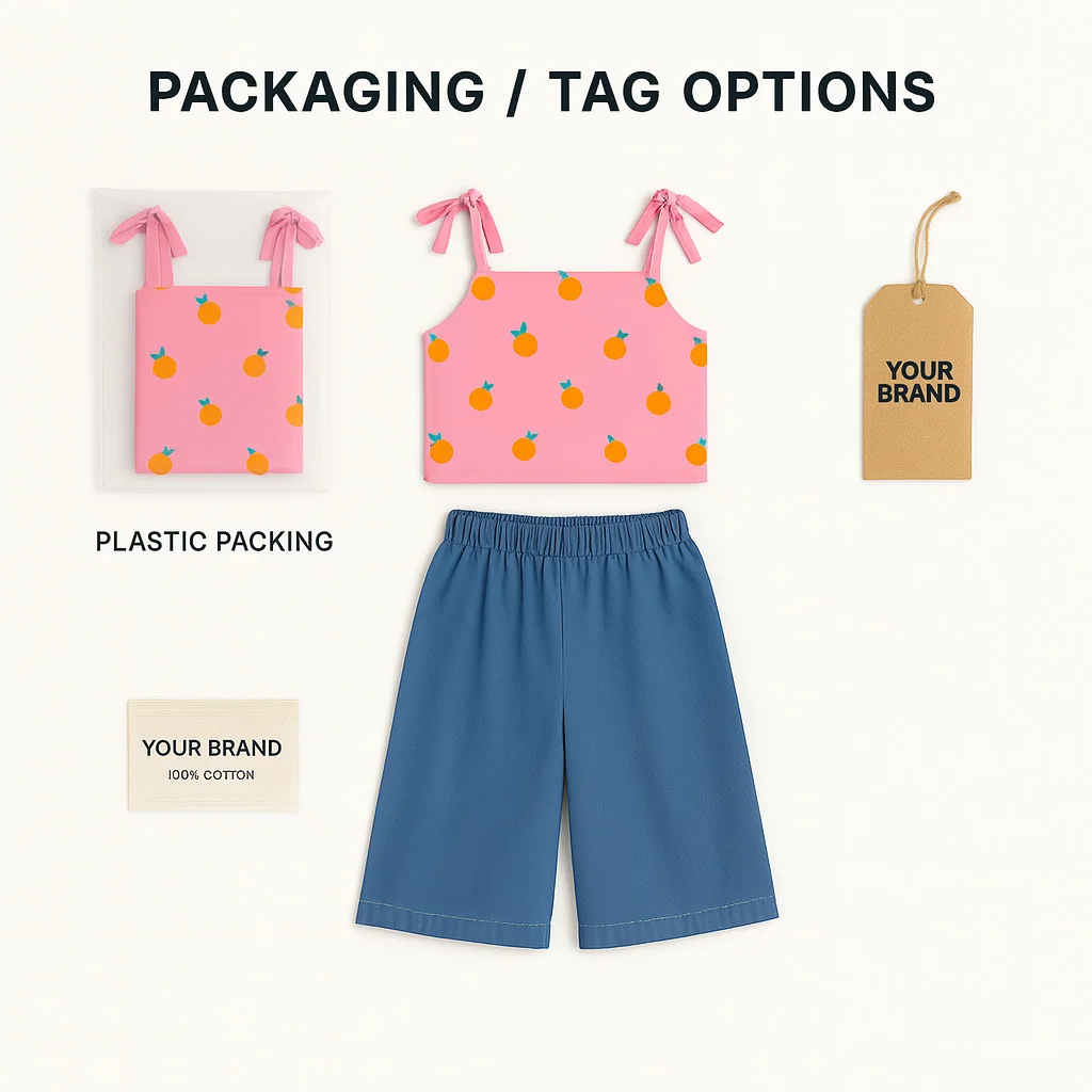 Custom Girls Clothes Set Kids Summer Outfit Sleeveless Fruit Print Top and Wide-Leg Pants Toddler Clothing Sets OEM ODM