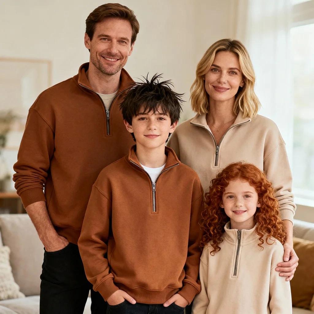 Customization Fleece Cotton Quarter Zip Premium Mid-weight Eco-Friendly Relaxed Fit Lounge Wear Basics 1/4 Zips Pullover Hoodie