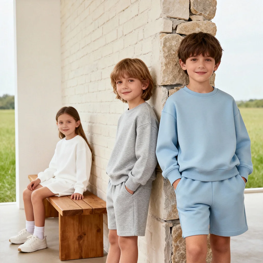 OEM Kids Apparel 340G Heavyweight Hooded Shorts Casual Sportswear for Children