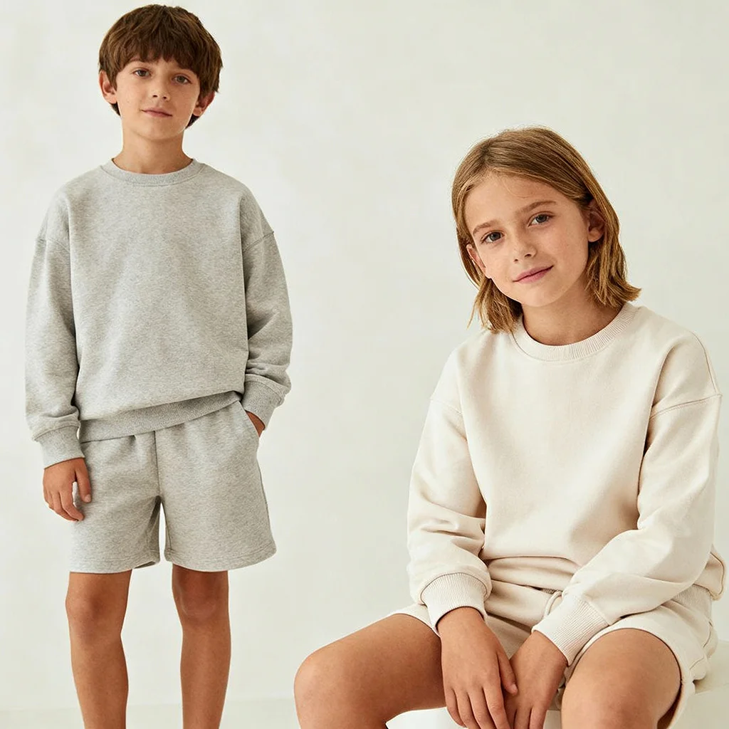 OEM Kids Apparel 340G Heavyweight Hooded Shorts Casual Sportswear for Children