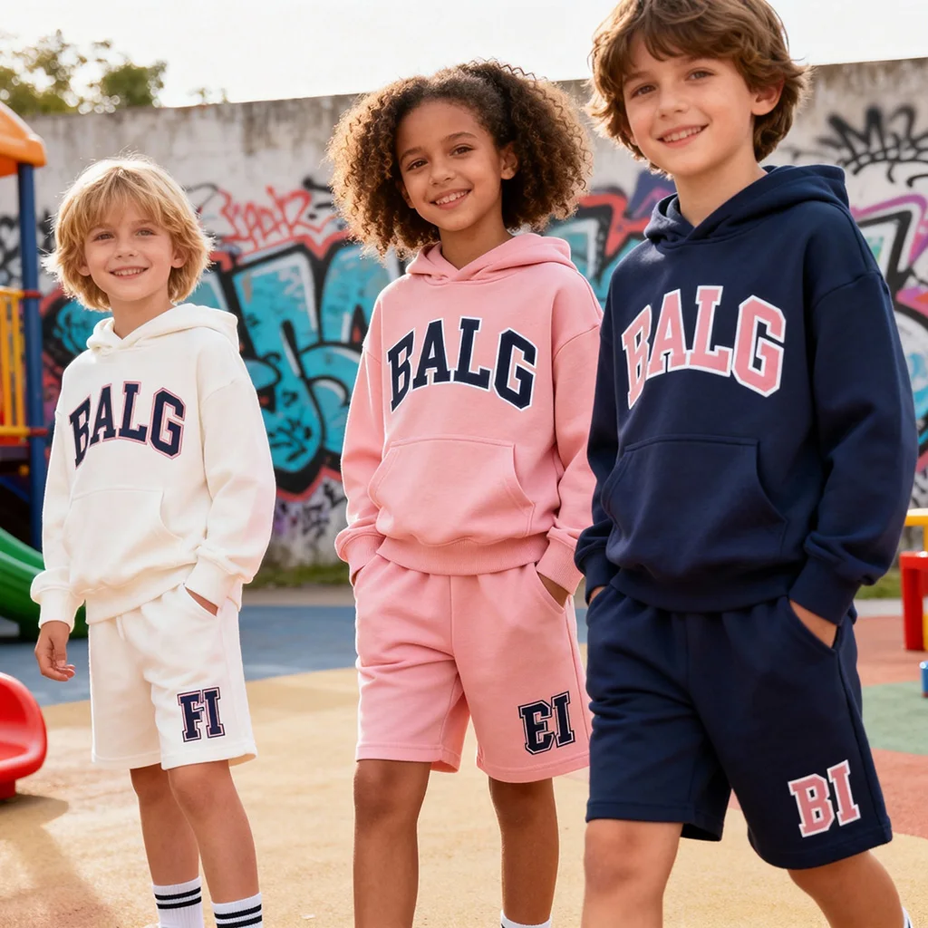 OEM Kids Apparel 340G Heavyweight Hooded Shorts Casual Sportswear for Children