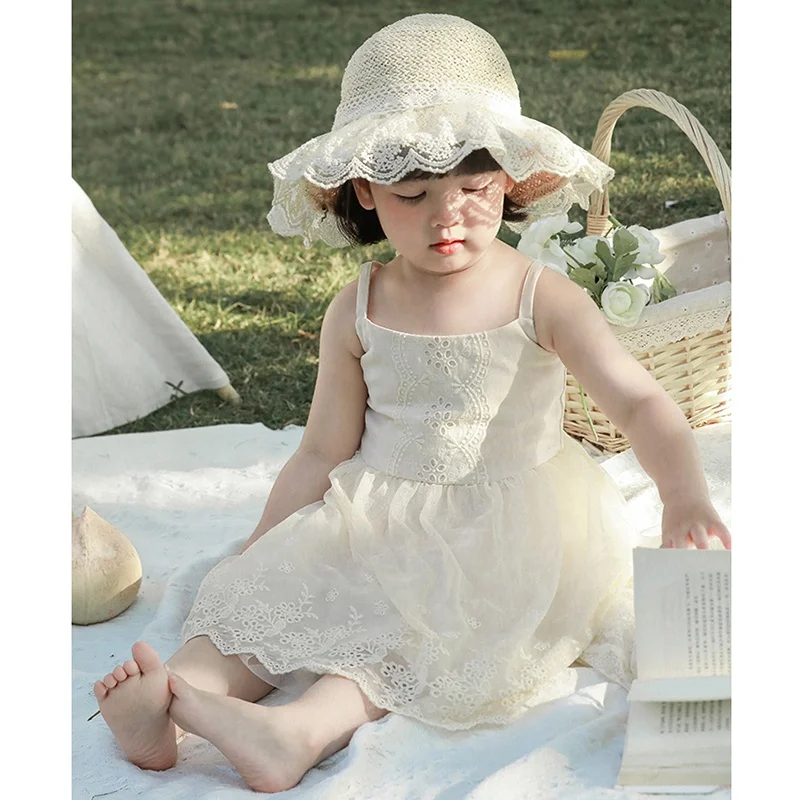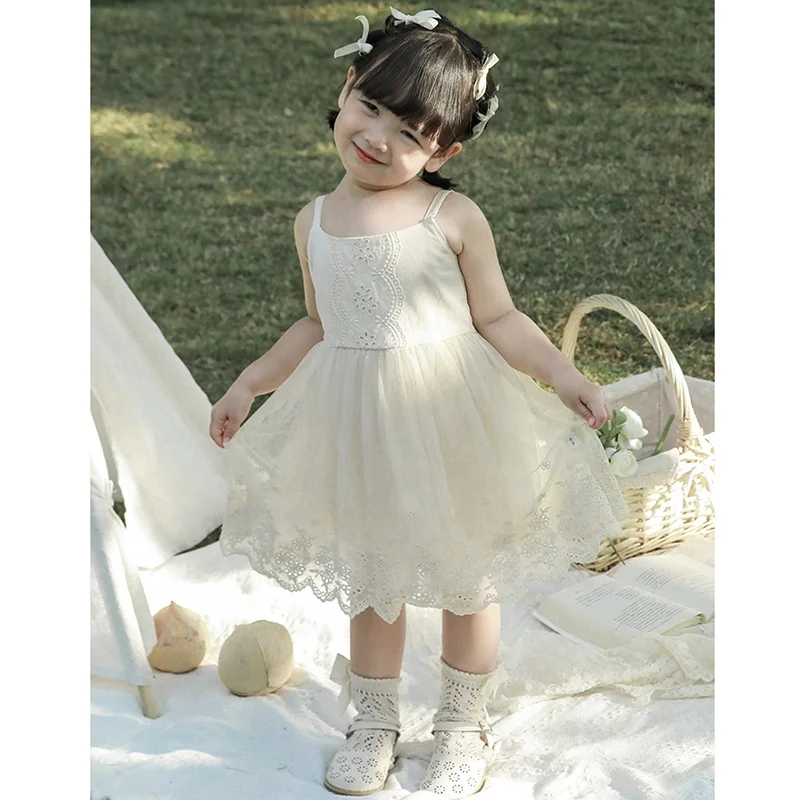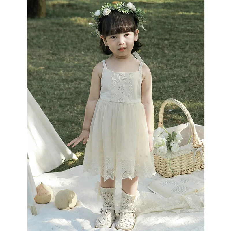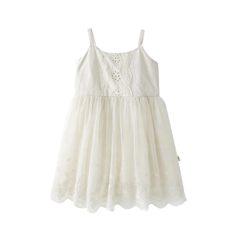 Custom Summer Sleeveless Girls Dresses Cotton High Quality Embroidered Cotton Strap Plain Kid Dresses of 3-4 Years
