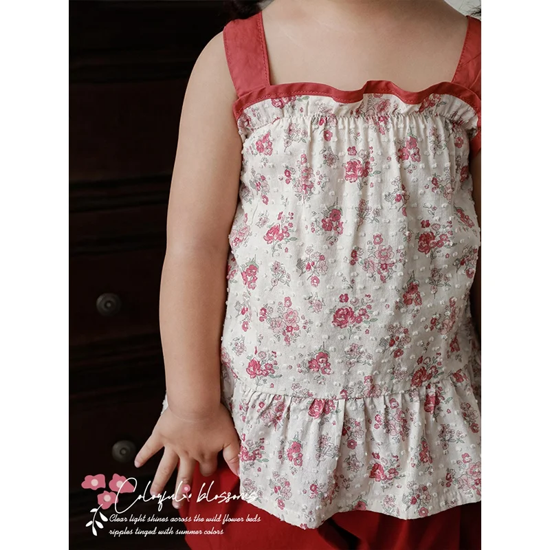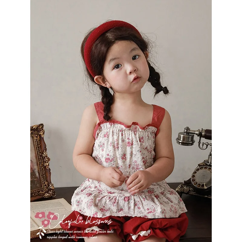 High Quality Floral Print Red Summer Kids Girls Tank Baby Girls Cozy Elegant Beautiful Wholesale All-Match Top Kid Clothing
