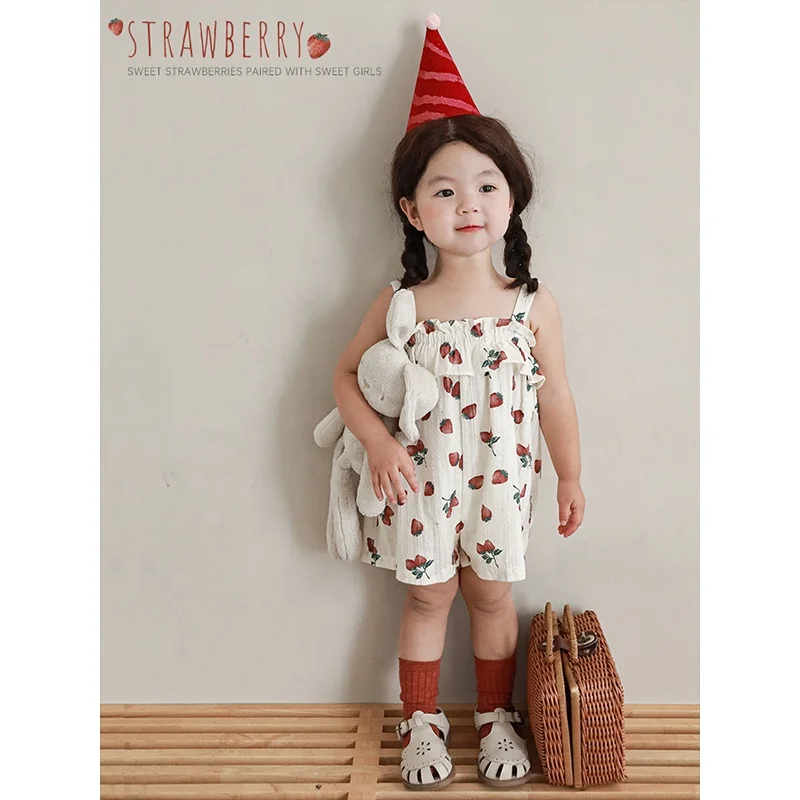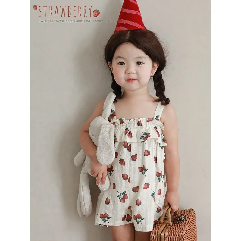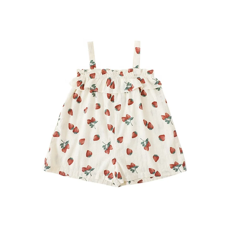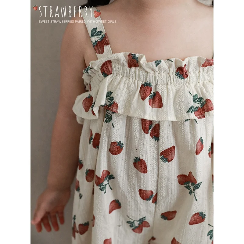 X4185 Exquisite Strawberry Digital Print Summer Kids Girls Beige Tank Shirt Baby Girls Cozy Wholesale All-Match Top Kid