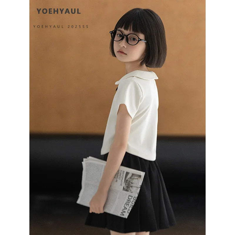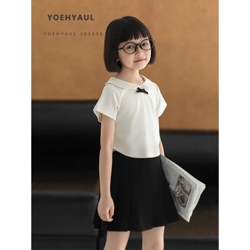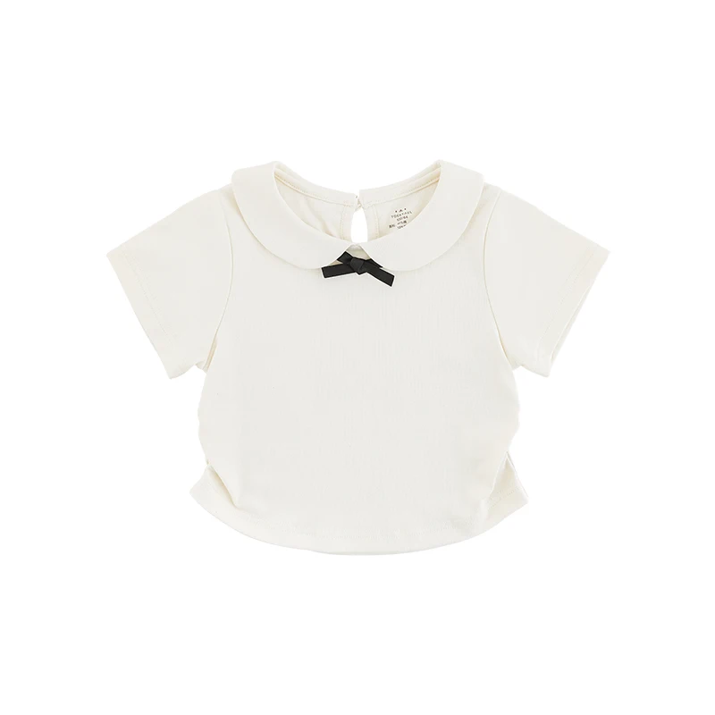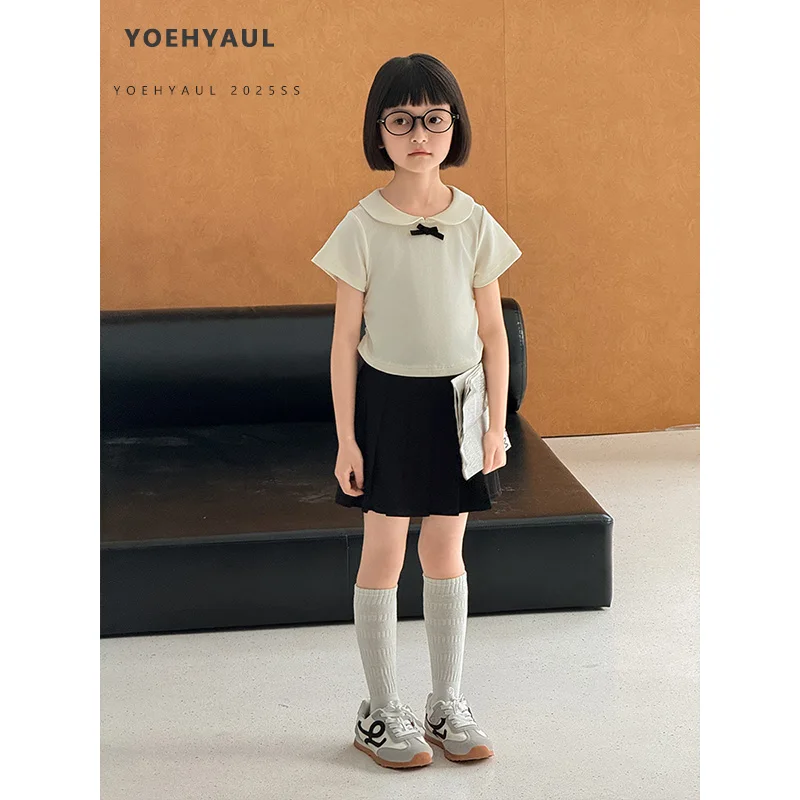 YOEHYAUL CD1244 4-14Y Cotton / Spandex Big Girls Toddler Kids Crop Top with Bow Solid Teen Girls Plan Shirts Tshirts and Tops