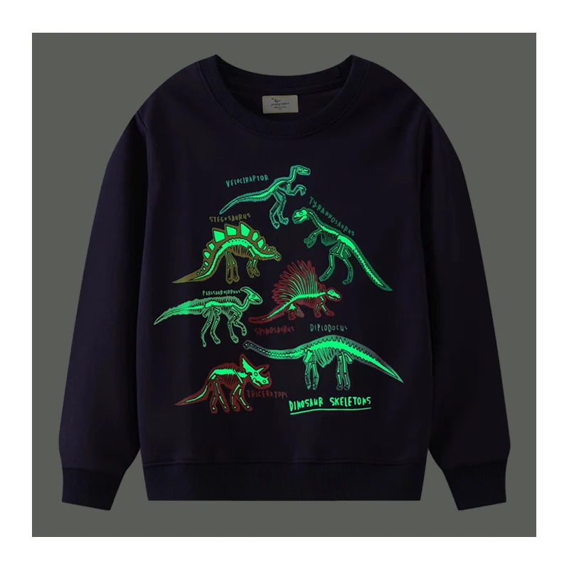 YOEHYAUL Custom Glow in the Dark Boy Toddler Crewneck Sweatshirt Dinosaur Print Boy Kids Pullover Sweatshirt for Children