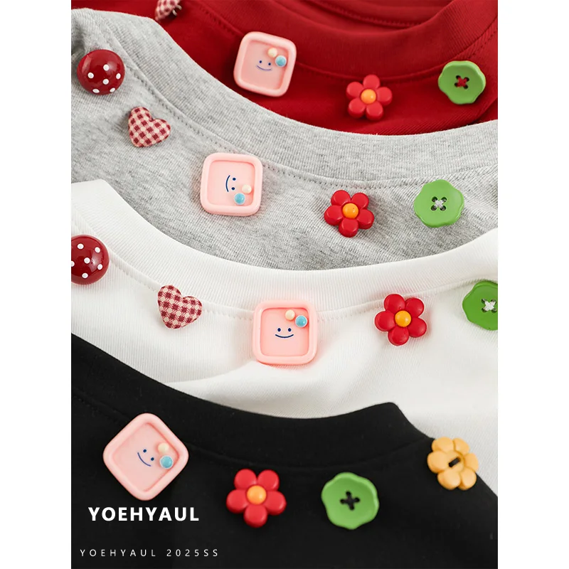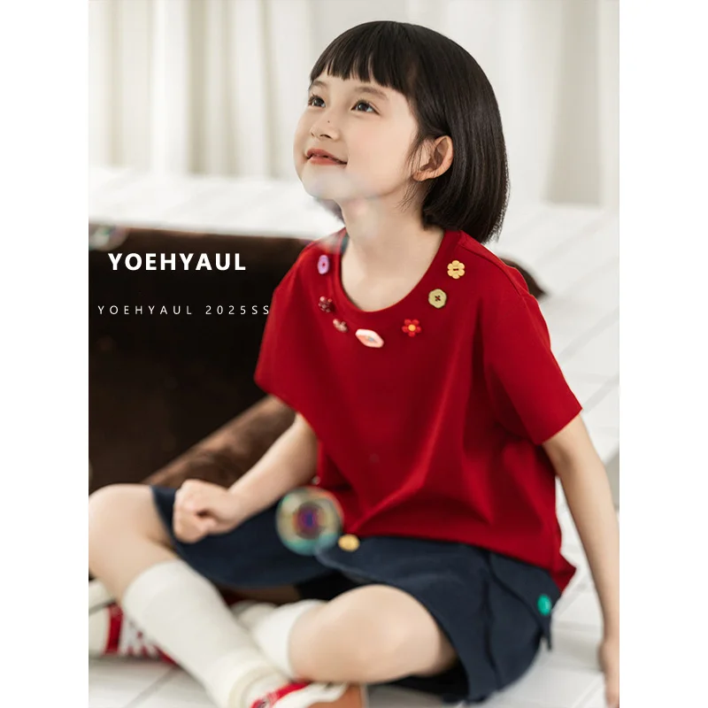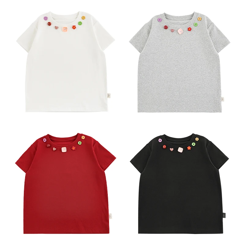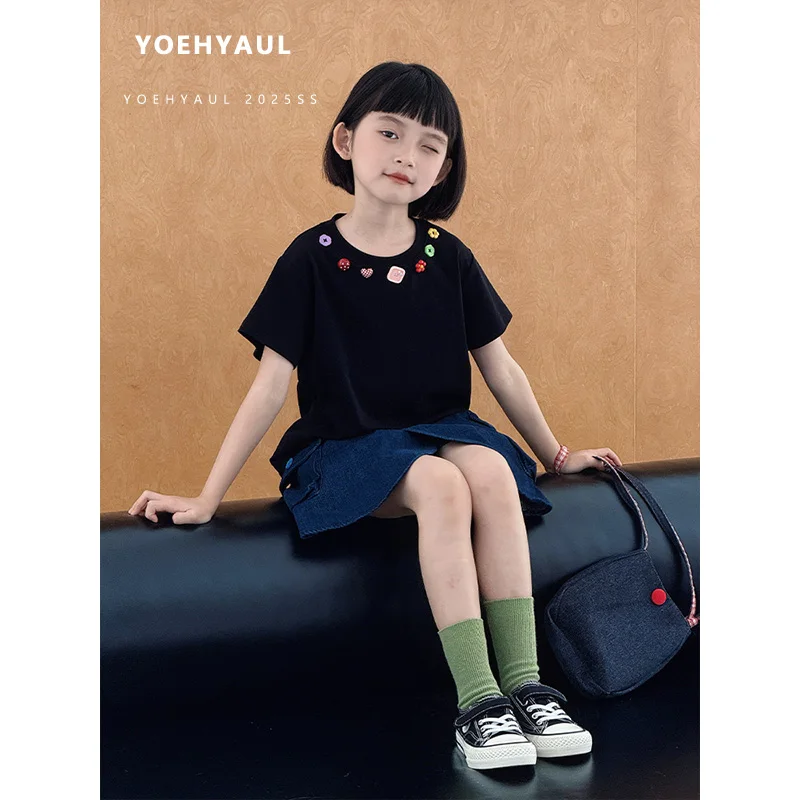 YOEHYAUL CD1663 4-15Y Wholesale Solid Big Girls Toddler Tshirt for Children Casual Teen Girl T Shirt T-shirt for Kids Girls