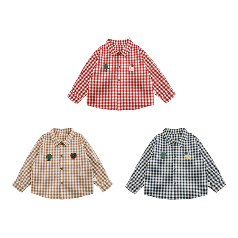 YOEHYAUL N5690 Spring 1-10T Unisex Boy Girl Kids Children Polo Shirt Wholesale Plaid Cotton Toddler Girl Shirts for Boys