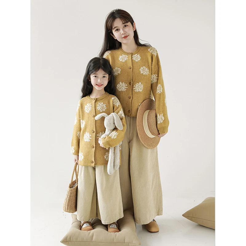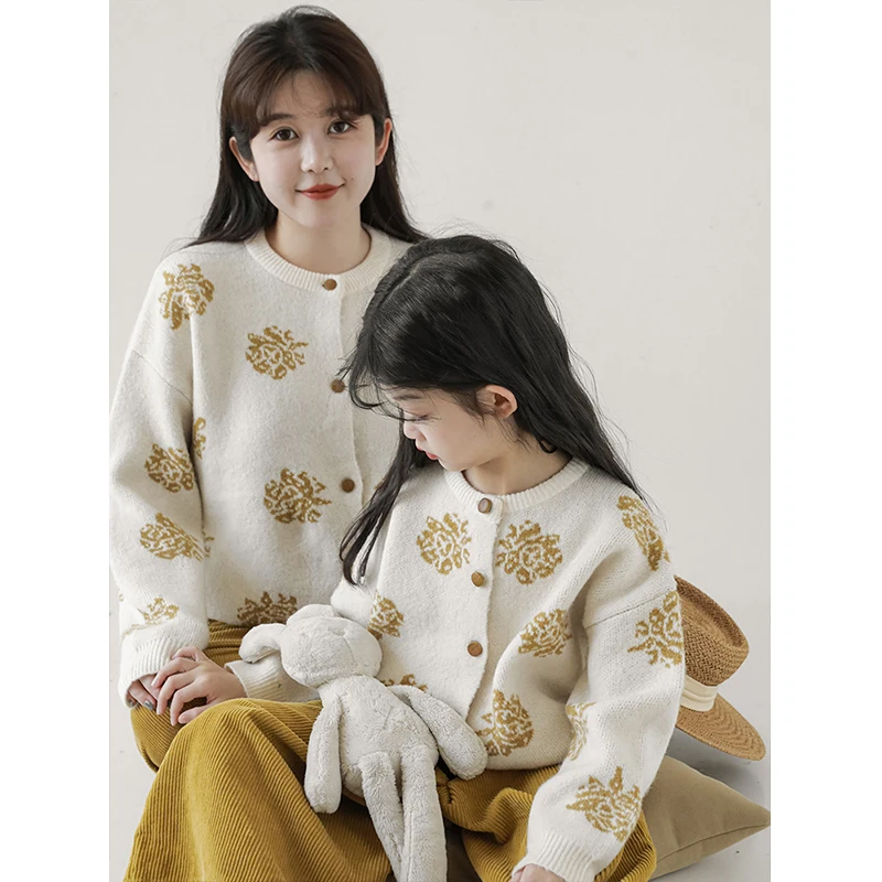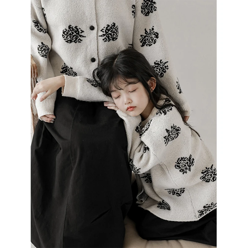 Big Children Sweater Spring and Autumn Rose Jacquard Large Size Sweater Autumn Retro Versatile Round Neck Sweater