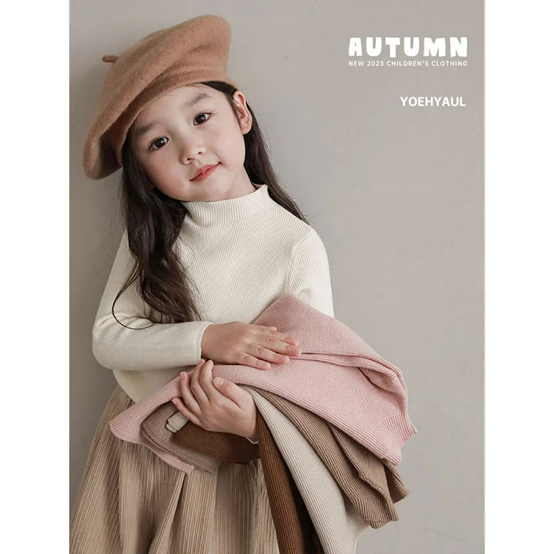 Girls Half Turtle Collar Slim Fit Bottoming Shirt Children's Cute Soft Windproof Warm and Versatile Long Sleeve T-shirt