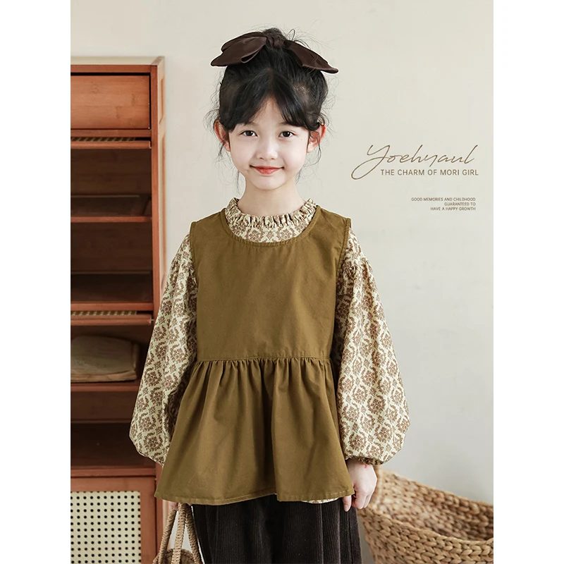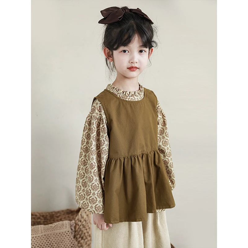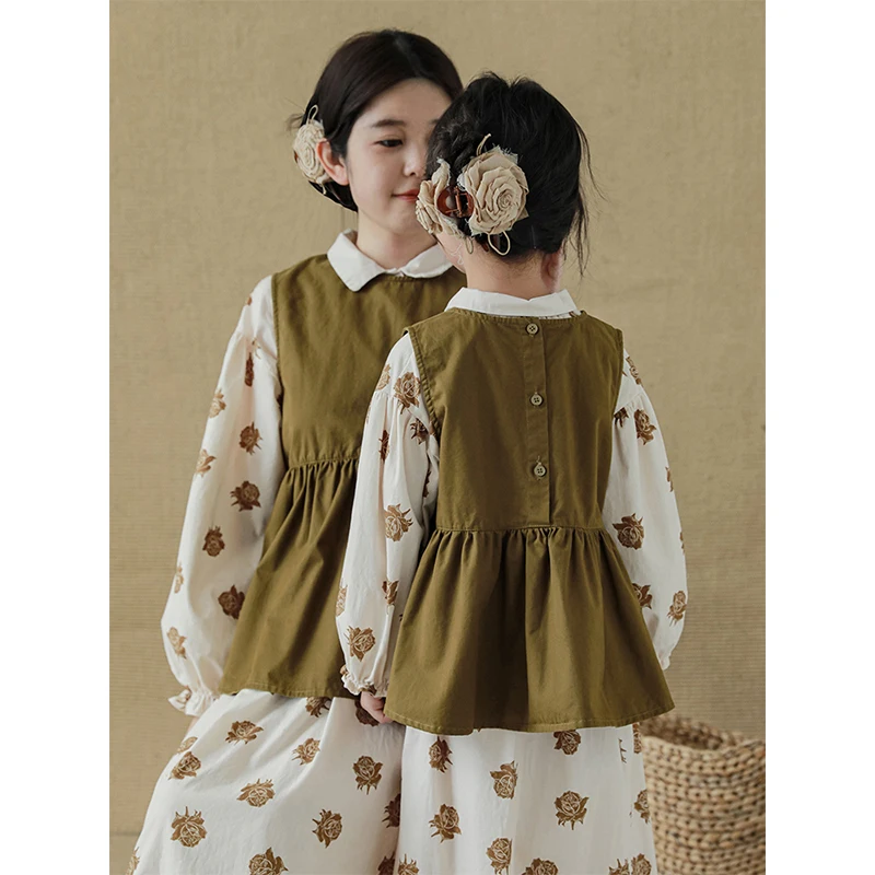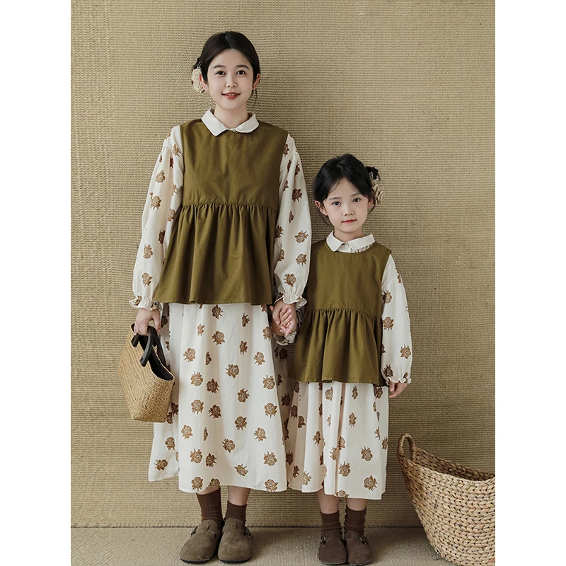 Bigger Children Girl's Parent-child Slevless Dress Spring Autumn Retro Style Skirt Large Size Pullover Vest Top