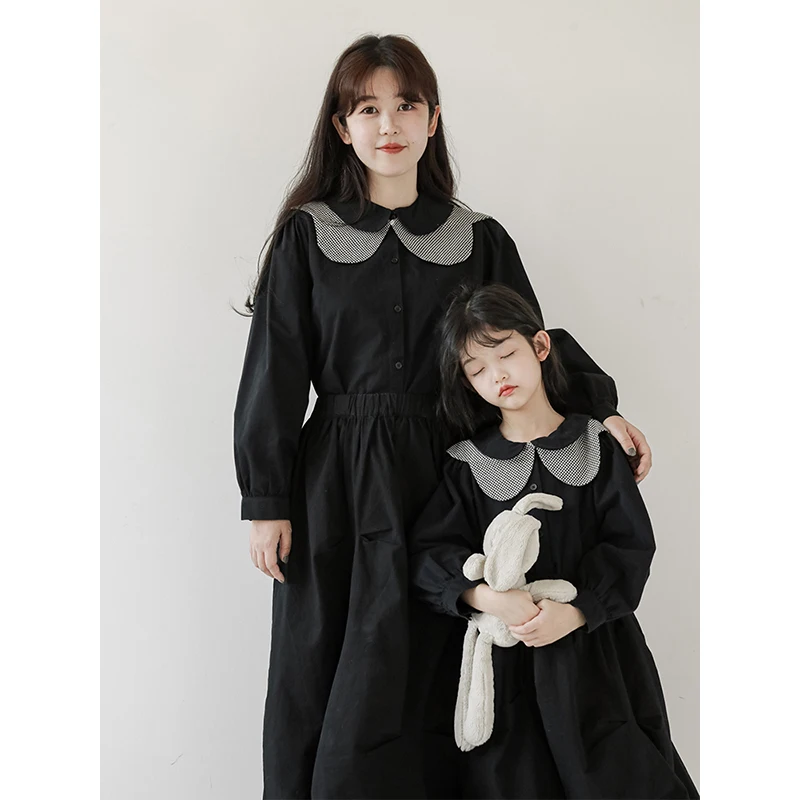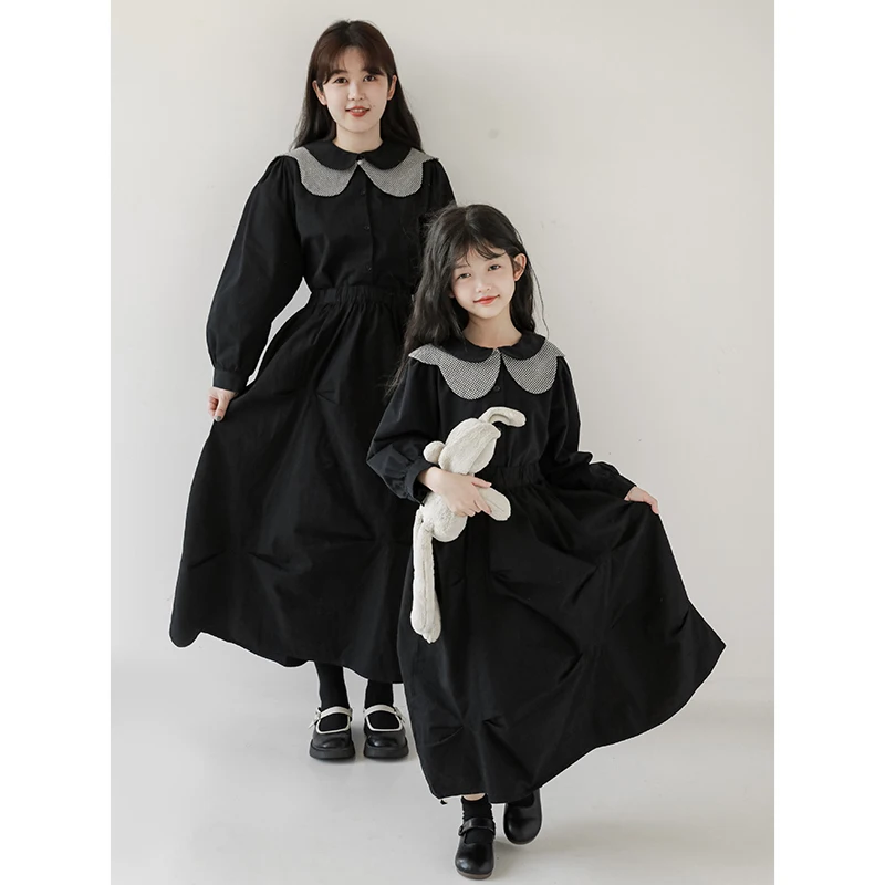 Big Children's Long-Sleeved Parent-Child Wear Petal Lapel Retro Simple Large Size Shirt Autumn Fashionable Trendy Top