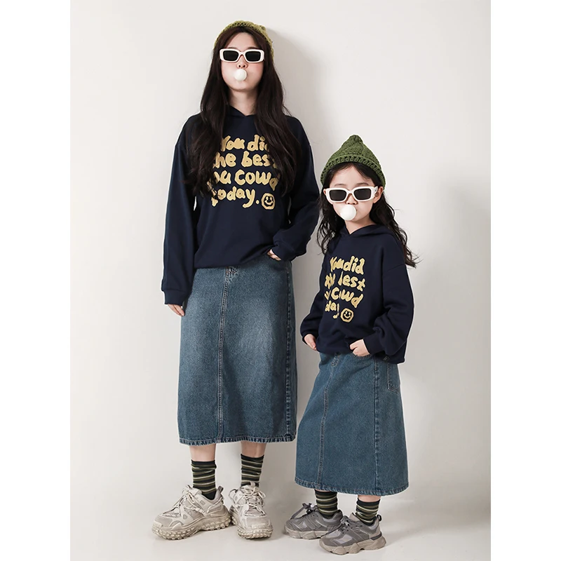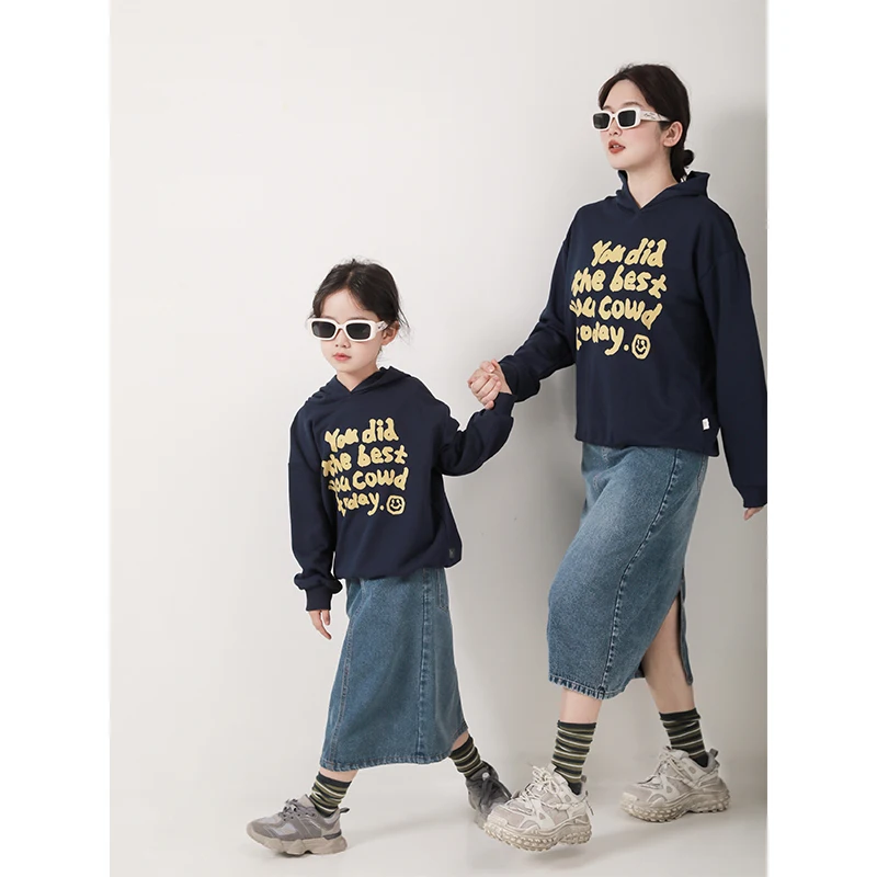 Girls' Sweatshirts Parent-Child Wear Large Size Energetic Contrasting Letter Sports Hoodies Autumn Loose Tops for Older Children