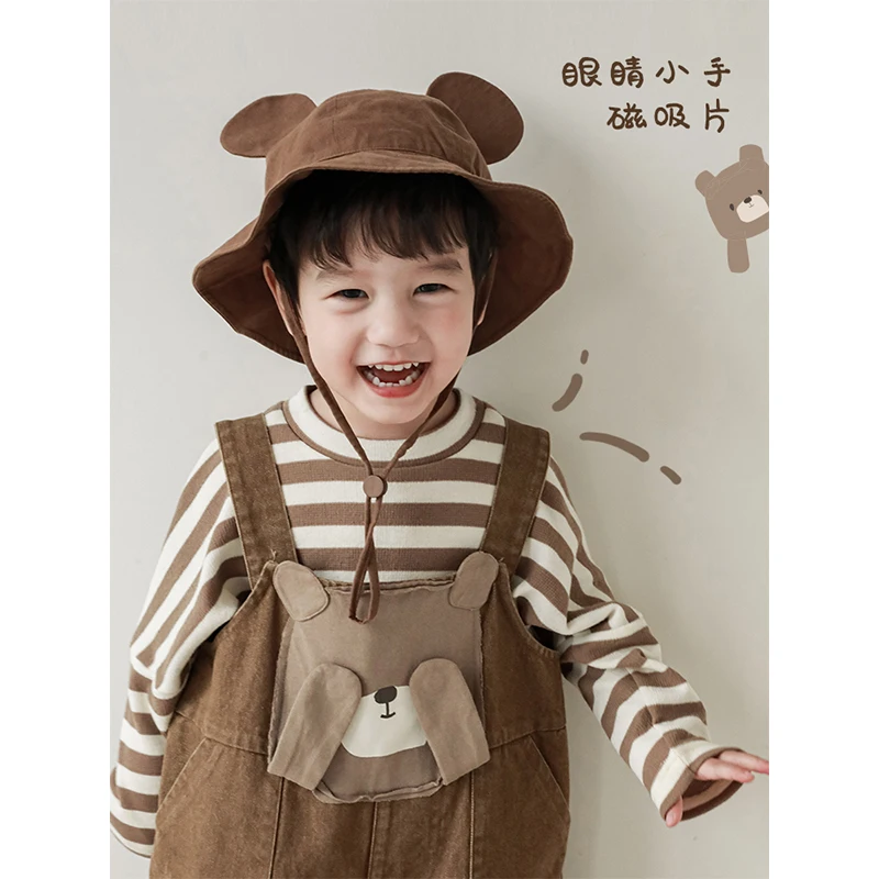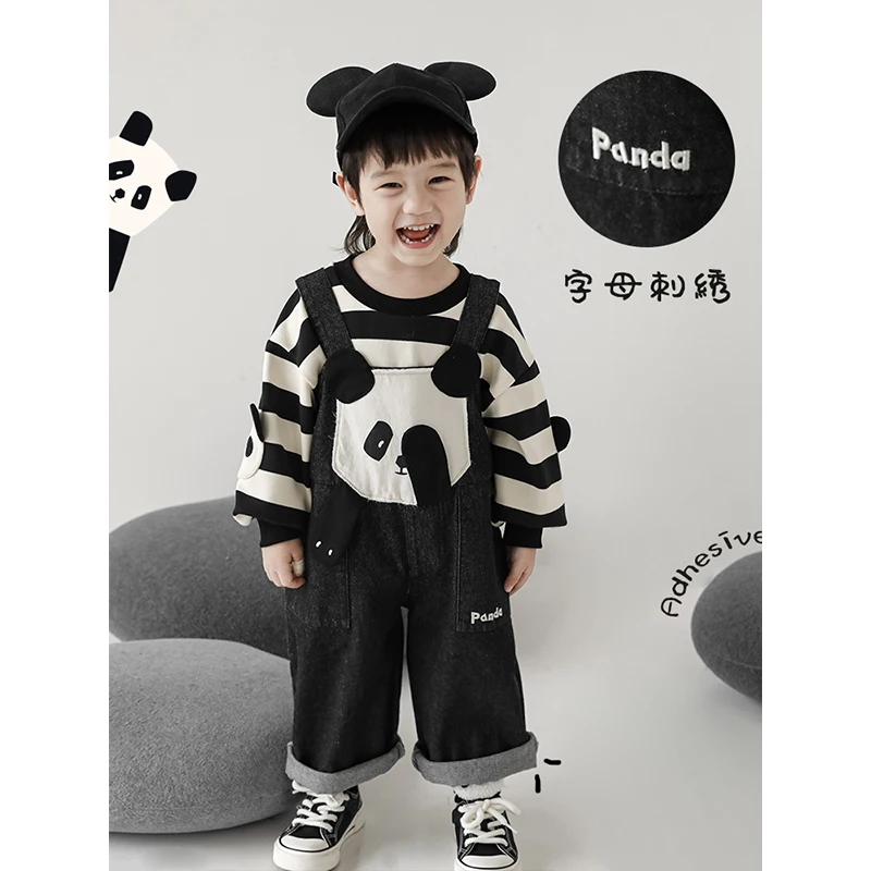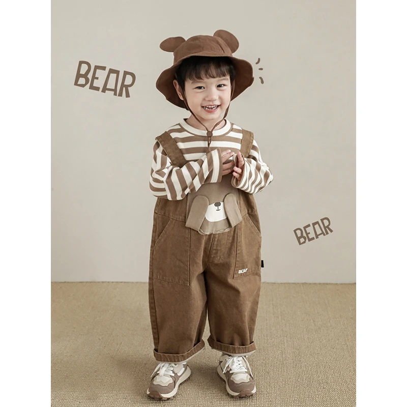 Boys' Embroidered Patch Bear Print Cute Overalls 2023 Autumn New Arrival Children's Chest Pocket Casual Pants