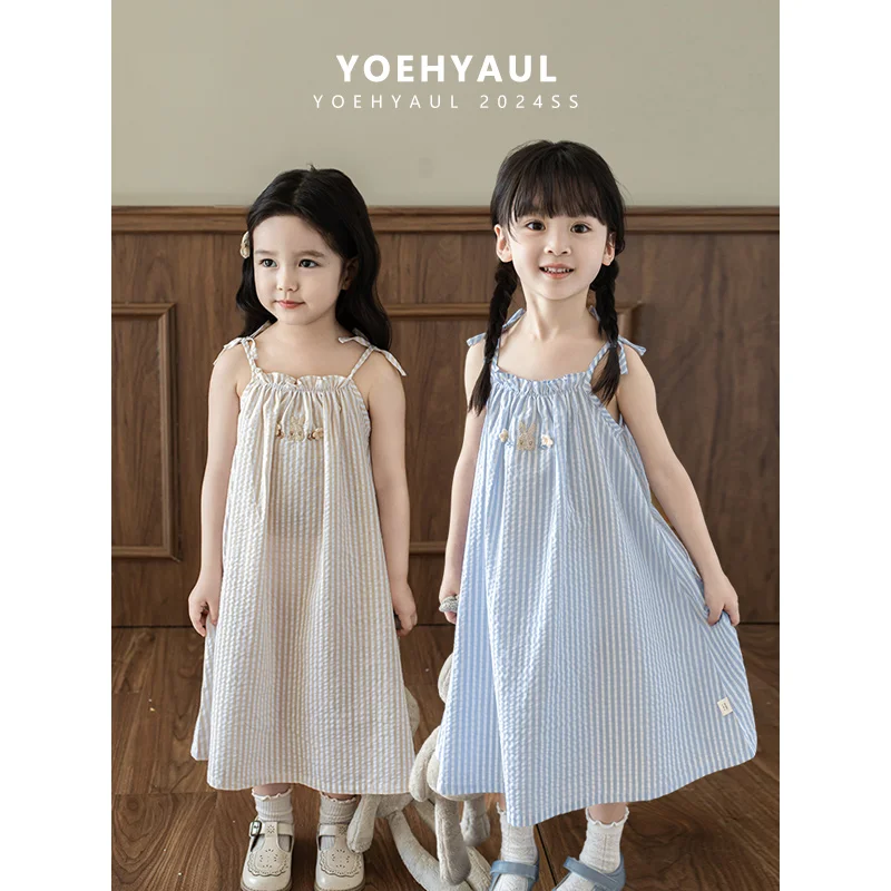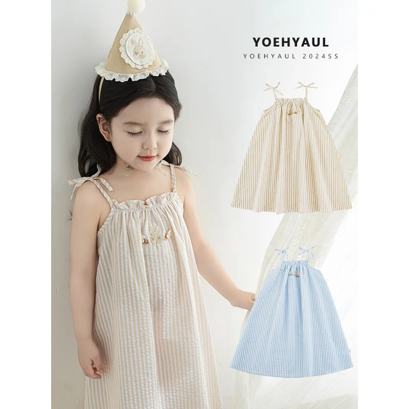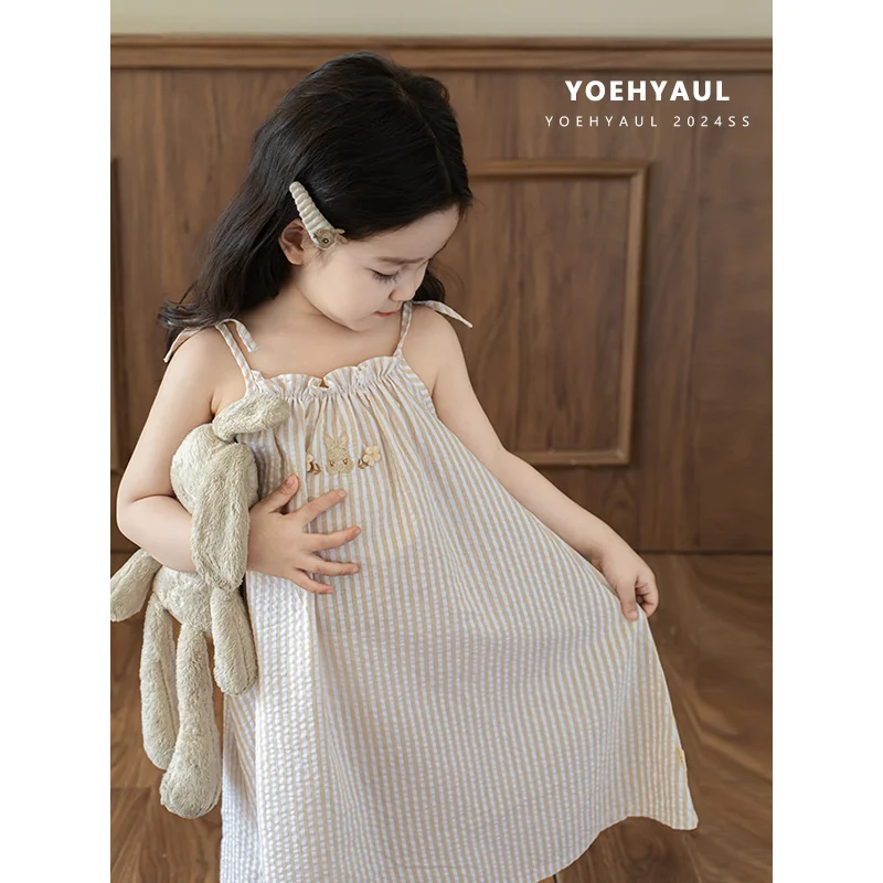 YOEHYAUL ZX0017 Wholesale Embroidery Cartoon Rabbit Girl's Clothing Dress Custom Logo Casual 3-4 Years Girls Cotton Summer Dress