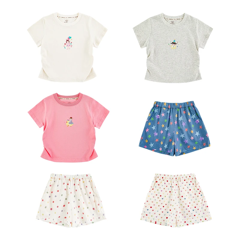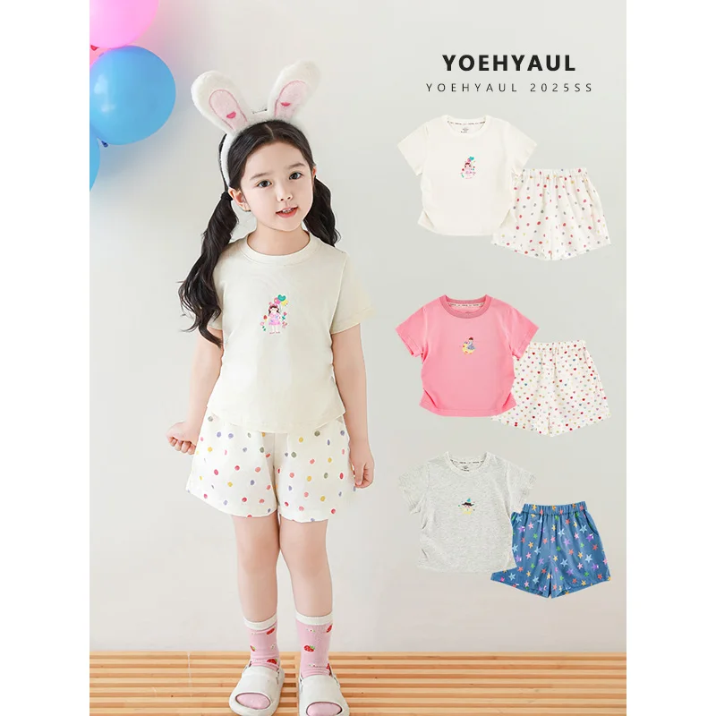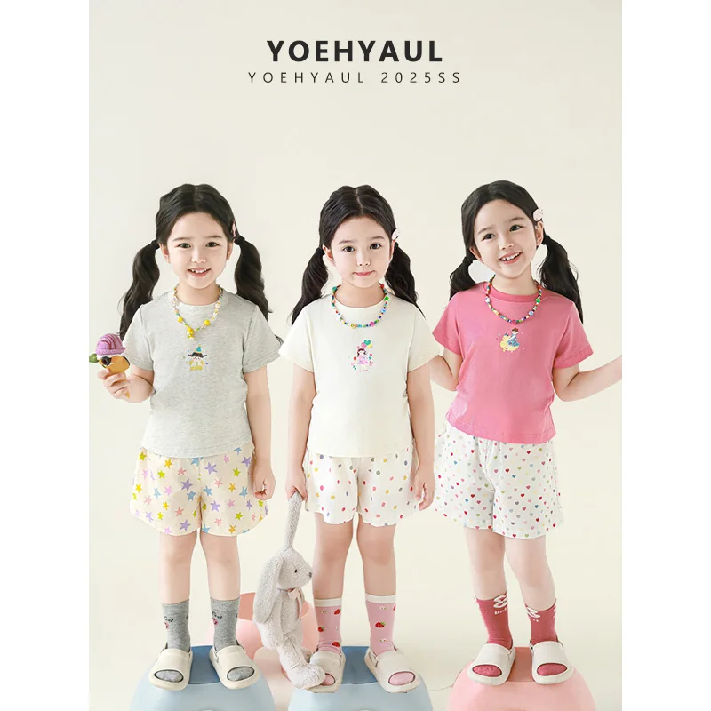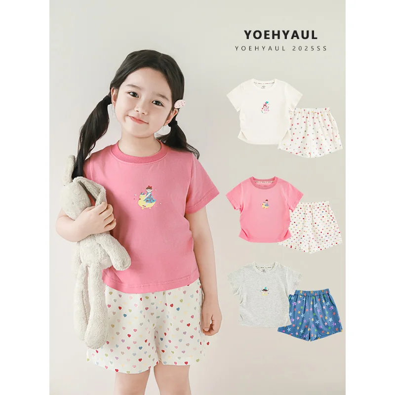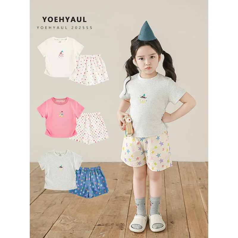 YOEHYAUL X5256 Summer Cotton Toddler Girls Clothing Shorts Sets Doll Pentagram Print T Shirt Kids Two Piece