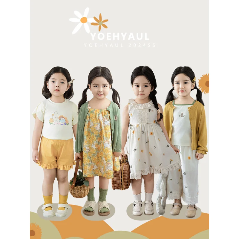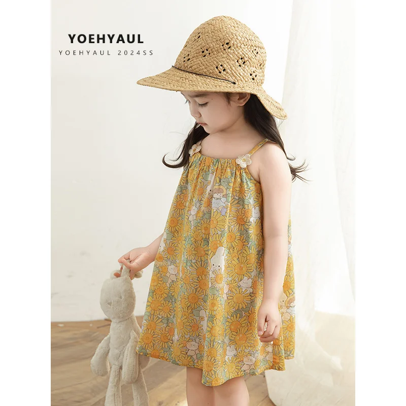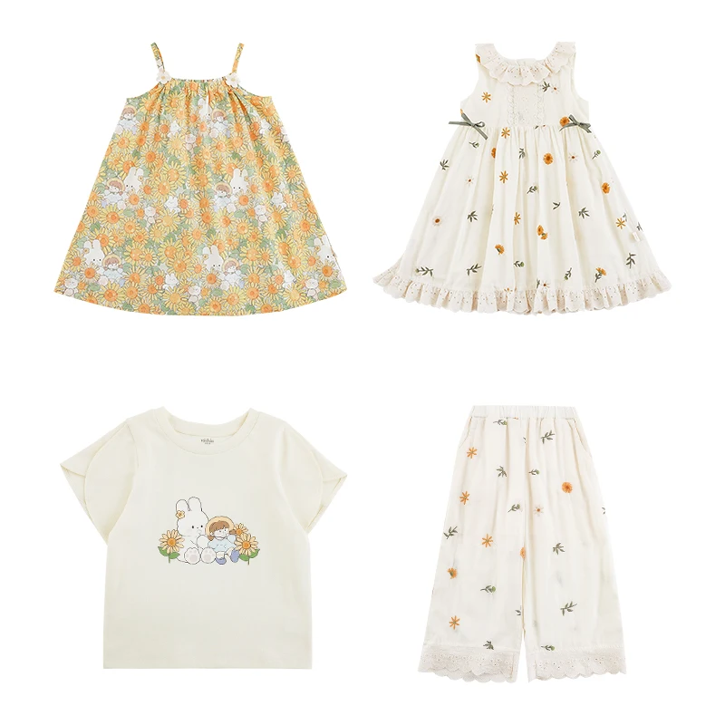 YOEHYAUL X4348 Factory Wholesale Sunflower Print Kids Girl Dress Clothes Set T-shirt and Pants Custom Logo Toddler Girls Outfits