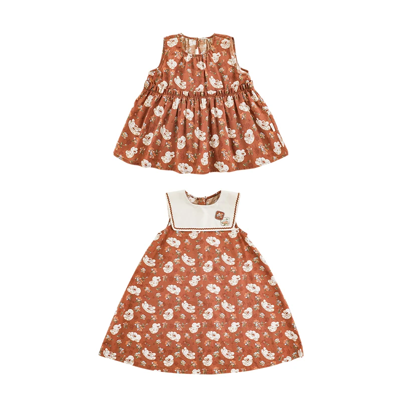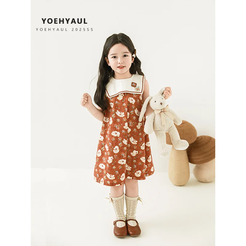 YOEHYAUL X4790 100% Cotton Bunny Print Summer Dresses for Kids Casual Breathable 2 Year Old Girl Dress Tank Top for Girls