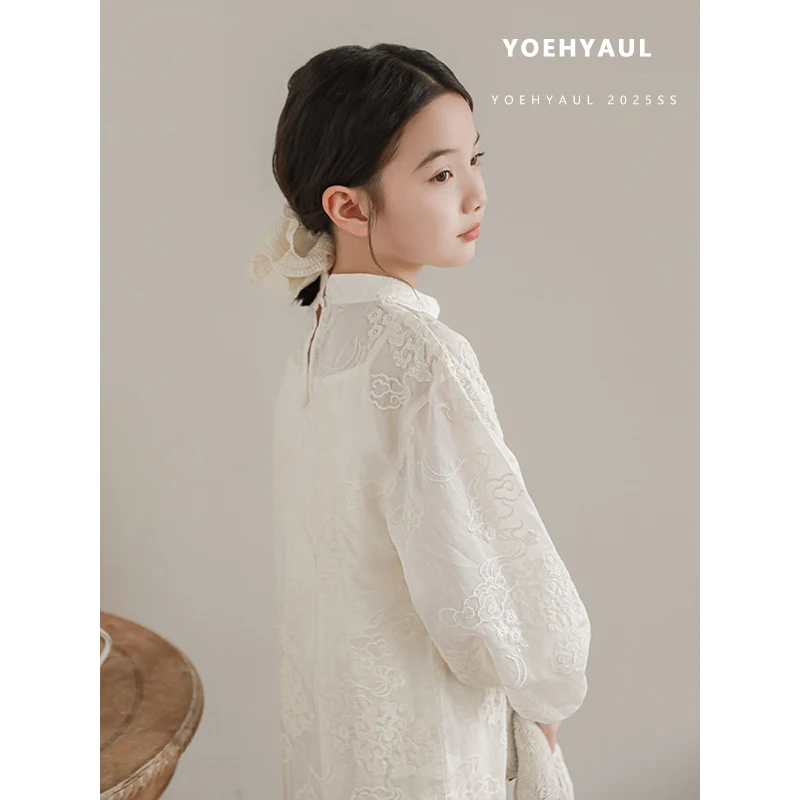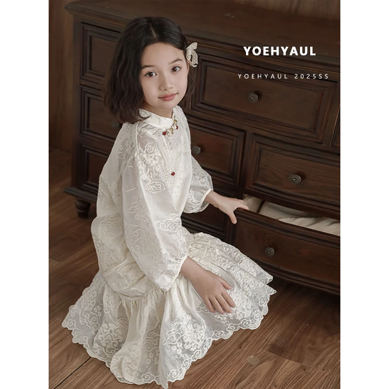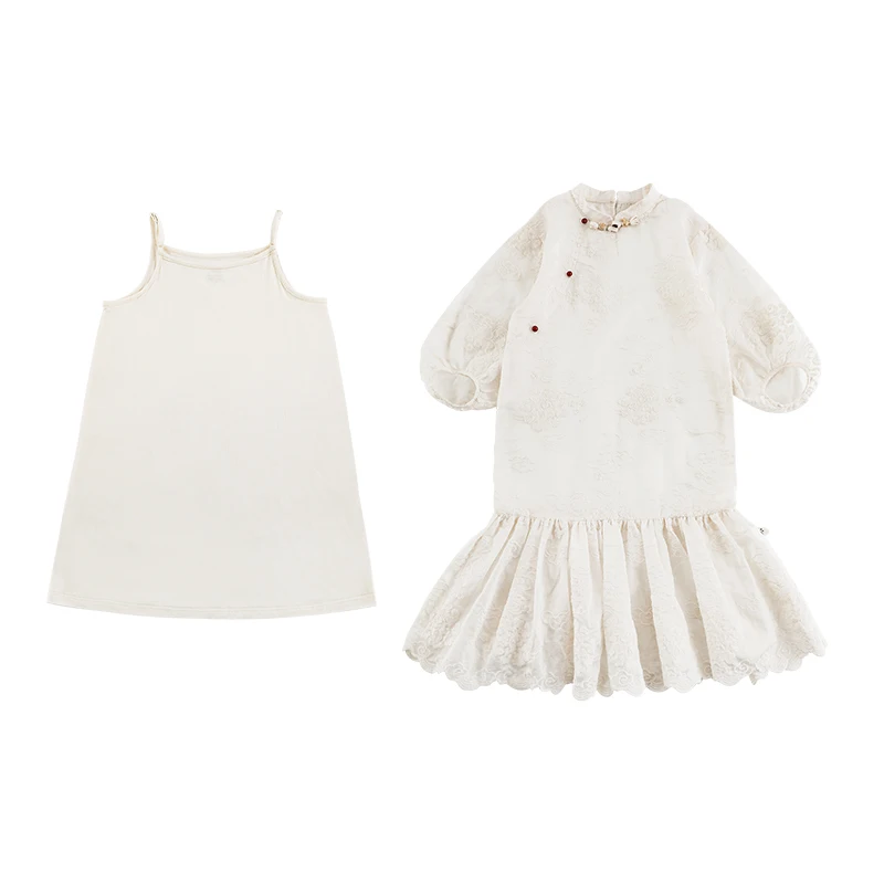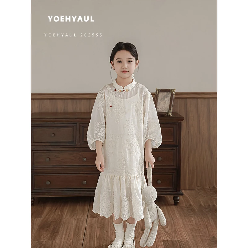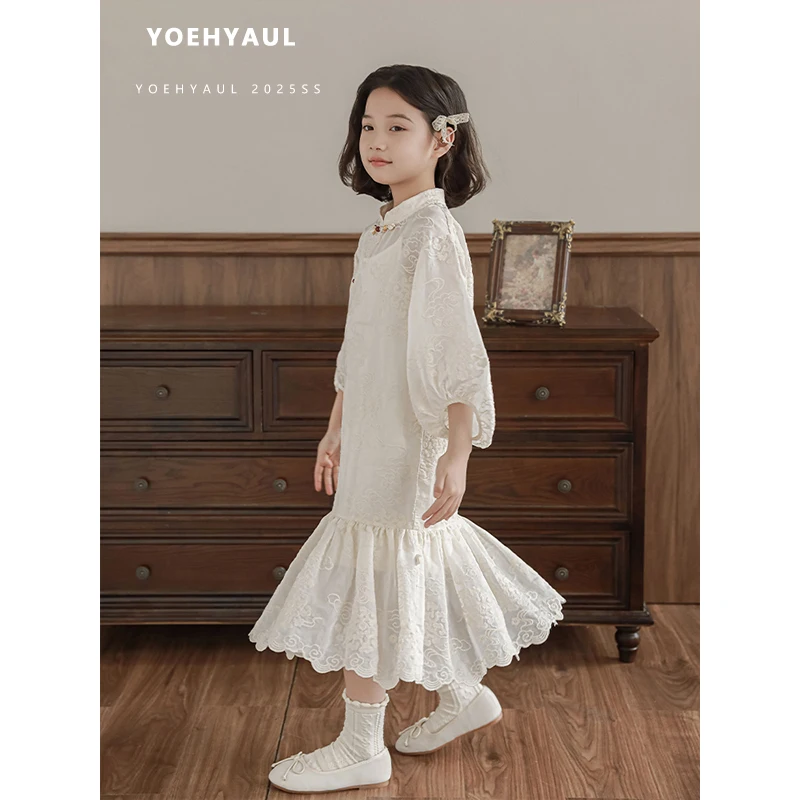 YOEHYAUL CD1211 Summer Big Kids Princess Dress for Girl Breathable White Elegant Girls Dresses with Tank Top