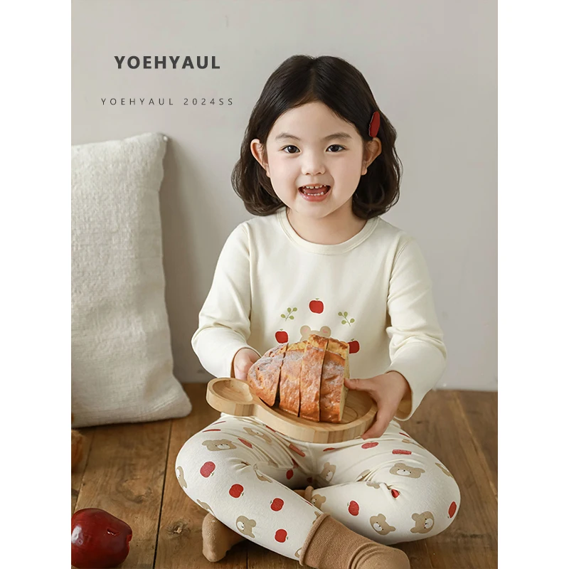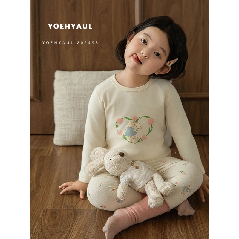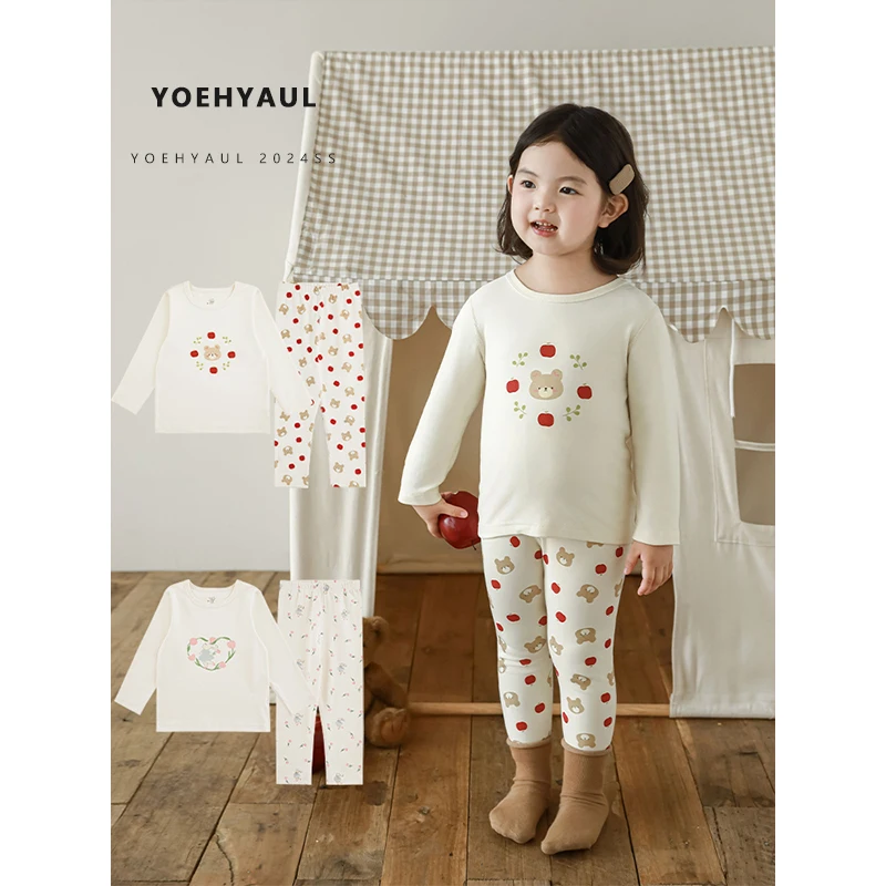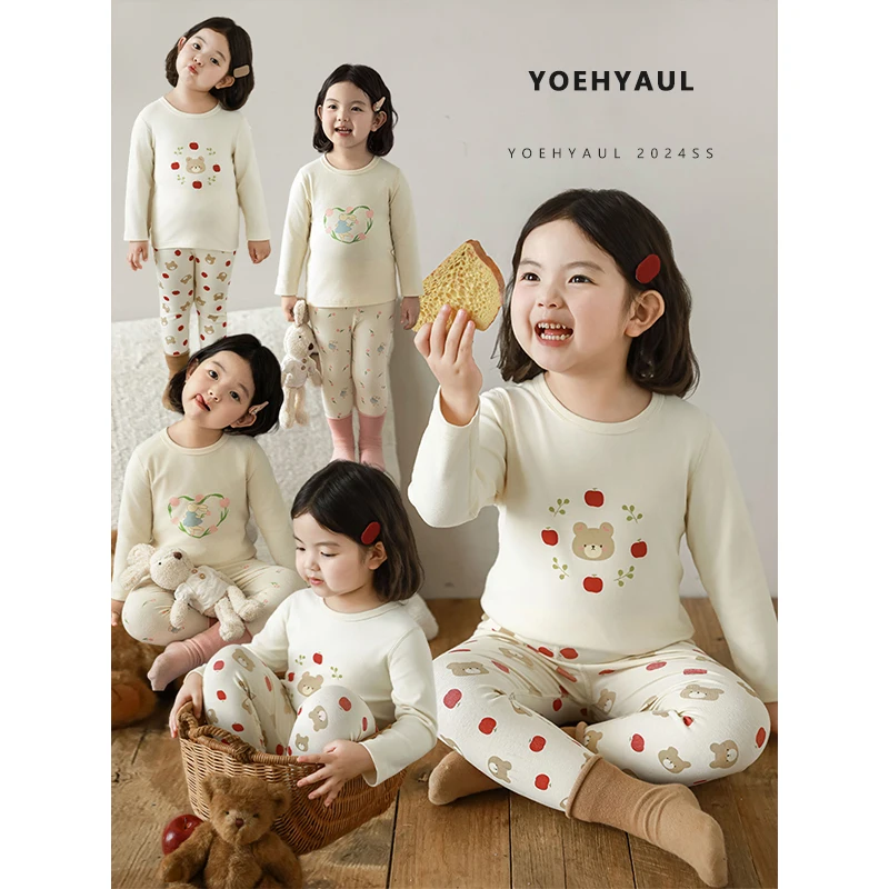 YOEHYAUL D3530 95% Cotton 5% Spandex Soft Elastic Winter Pajamas for Children Cute Cotton Child Pajamas Kids Sleepwear Suit