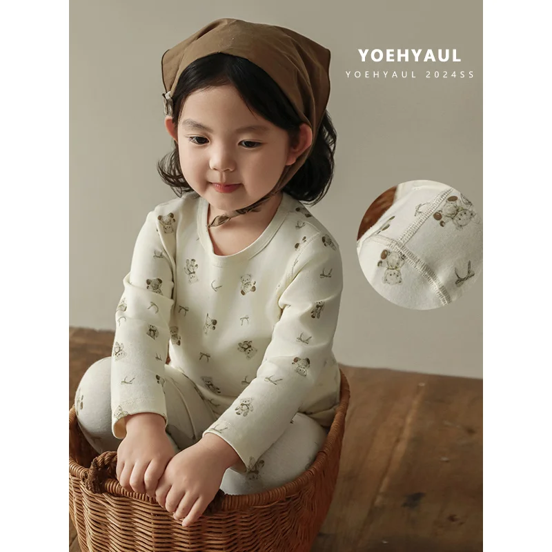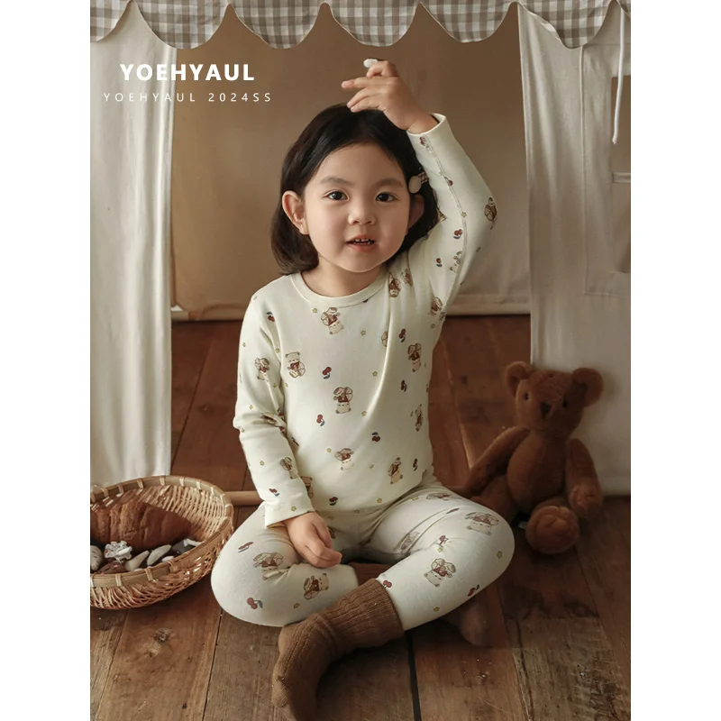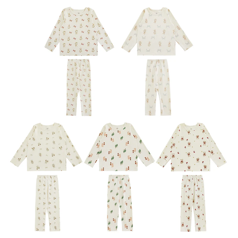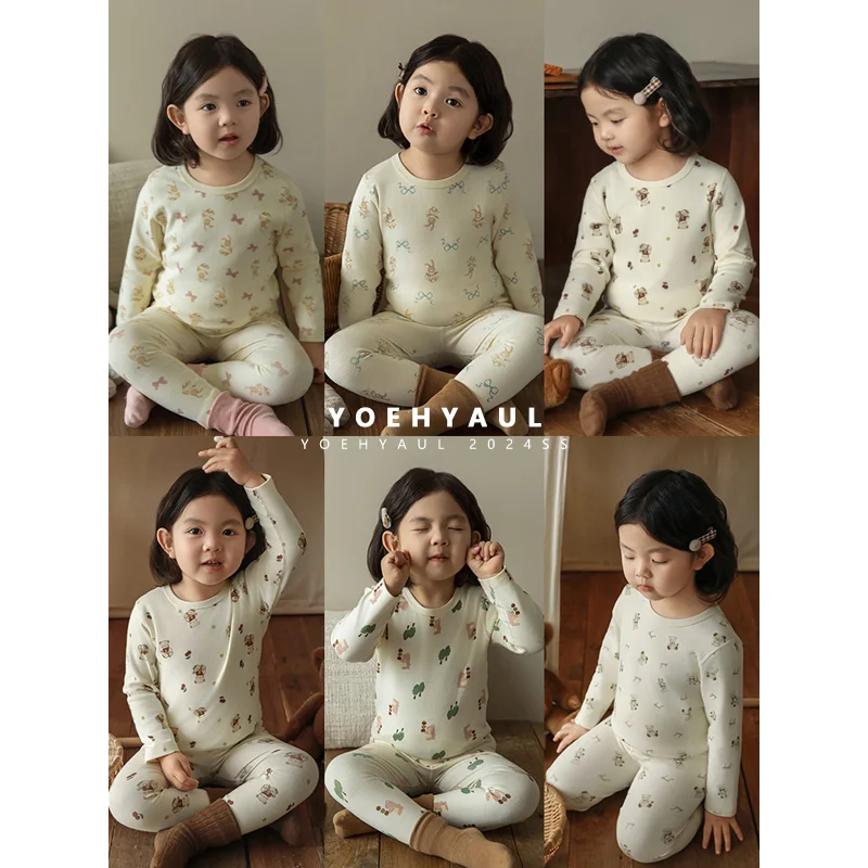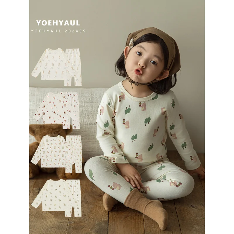 YOEHYAUL Q3481 Breathable Soft Toddler Girls Sleepwear Set Homewear Cute Full Print Kids Girl Pajama Sleepwear Kids Children