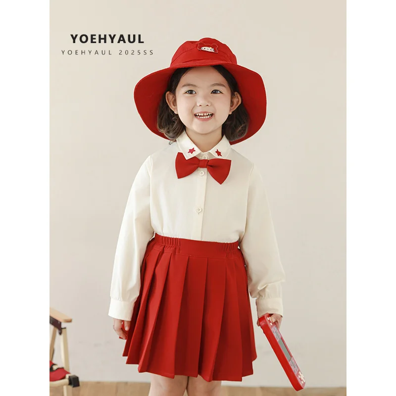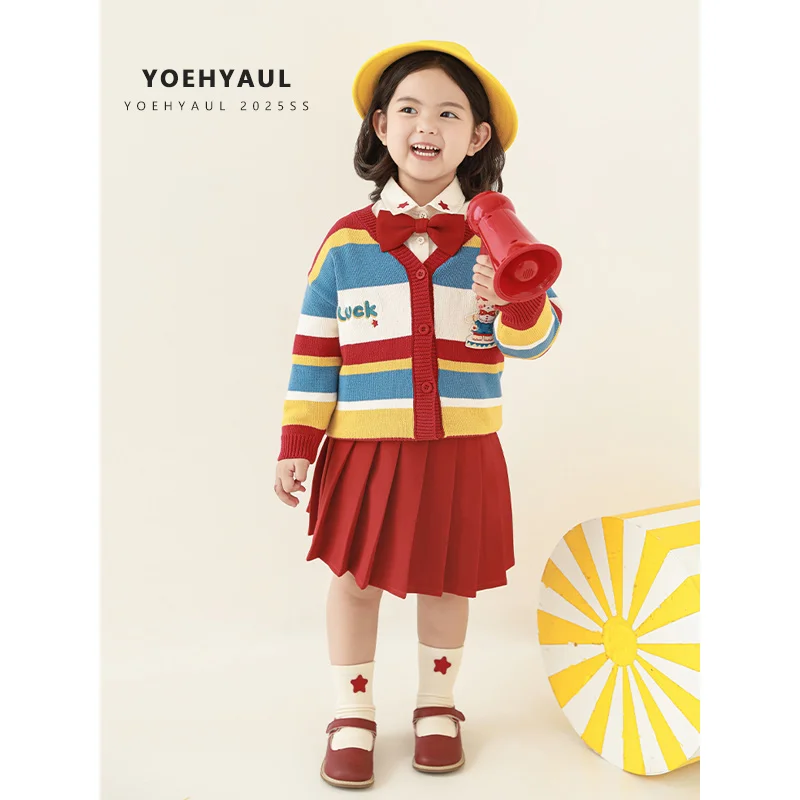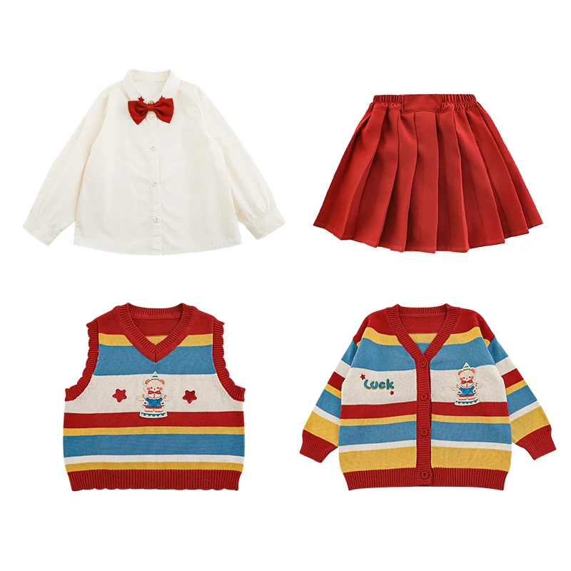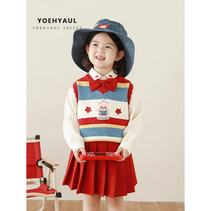 YOEHYAUL C3017 Baby Girls Skirt Blouse for Kids Kint Vest Sweater for Girls Cute Skirt Blouse for Kids
