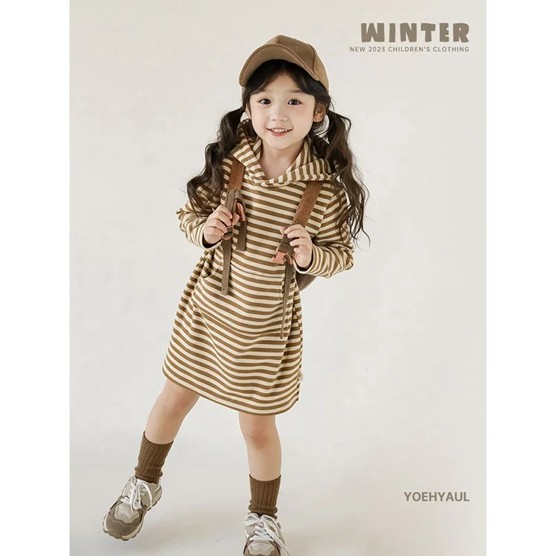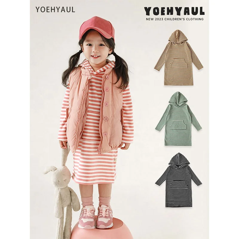 YOEHYAUL Oem Logo Striped Children Girls Sweatshirt Kids Hoodies Long Winter Autumn Wholesale Kids Dresses for Kids Girls