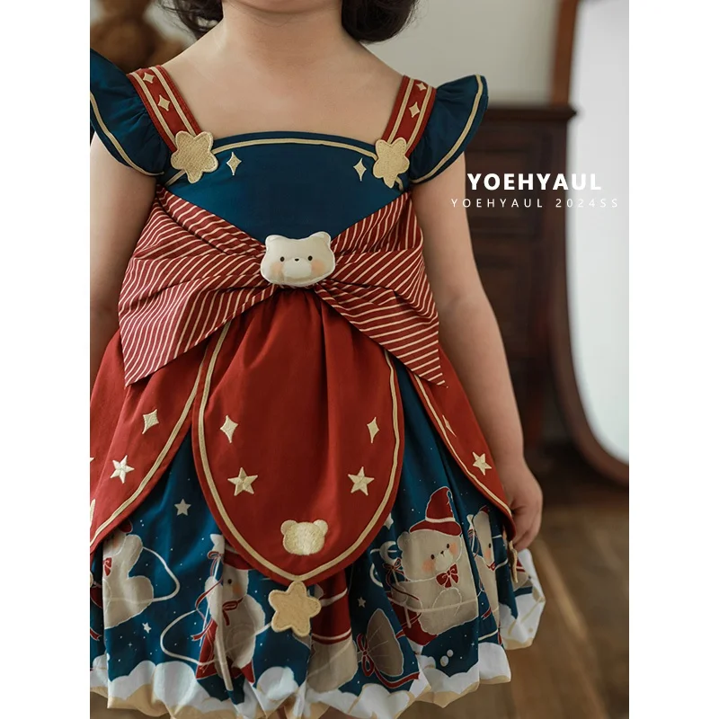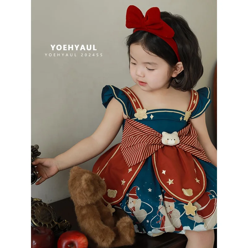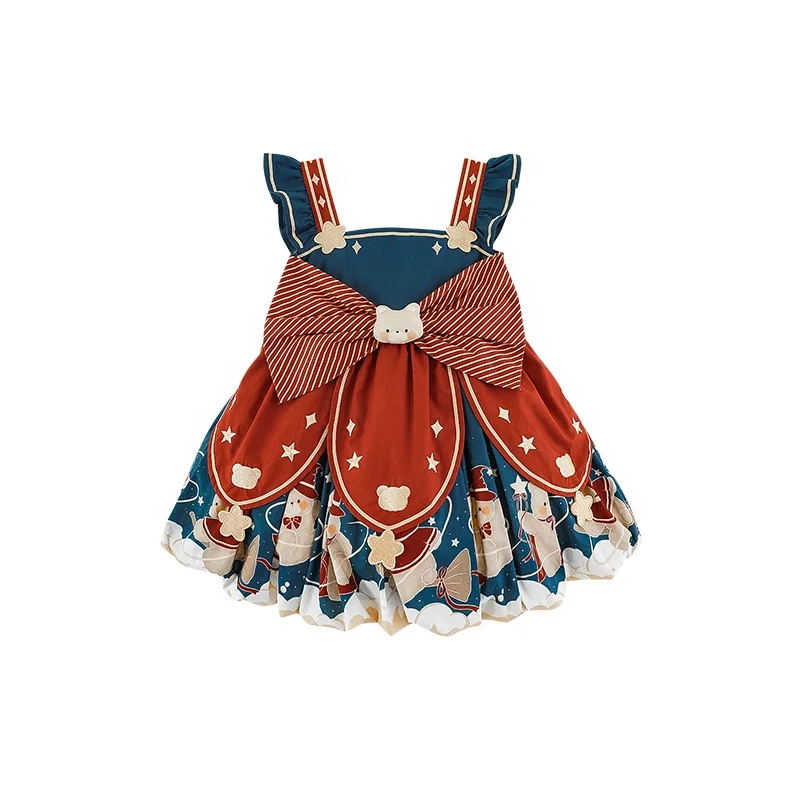 YOEHYAUL X4442 Factory Boutique Bow Lolita Style Party Dress for Toddler Girls 7-8 Years Custom Kids Girls Dress with Ruffled