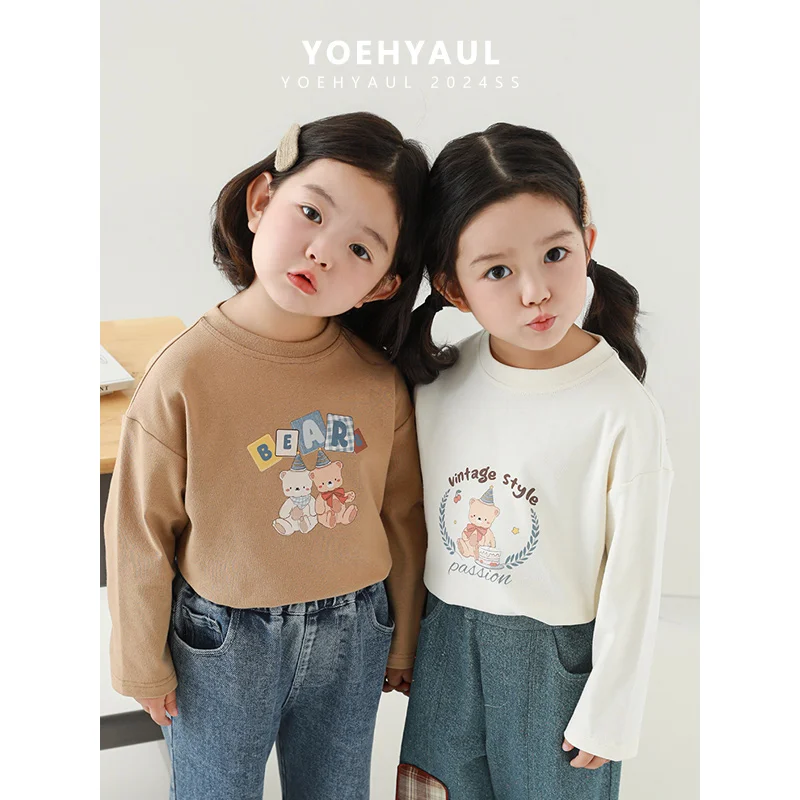 Children's Long Sleeve Top Apparel Customizable 230g Cotton Basic Shirt Layering Tee Plain Colors OEM