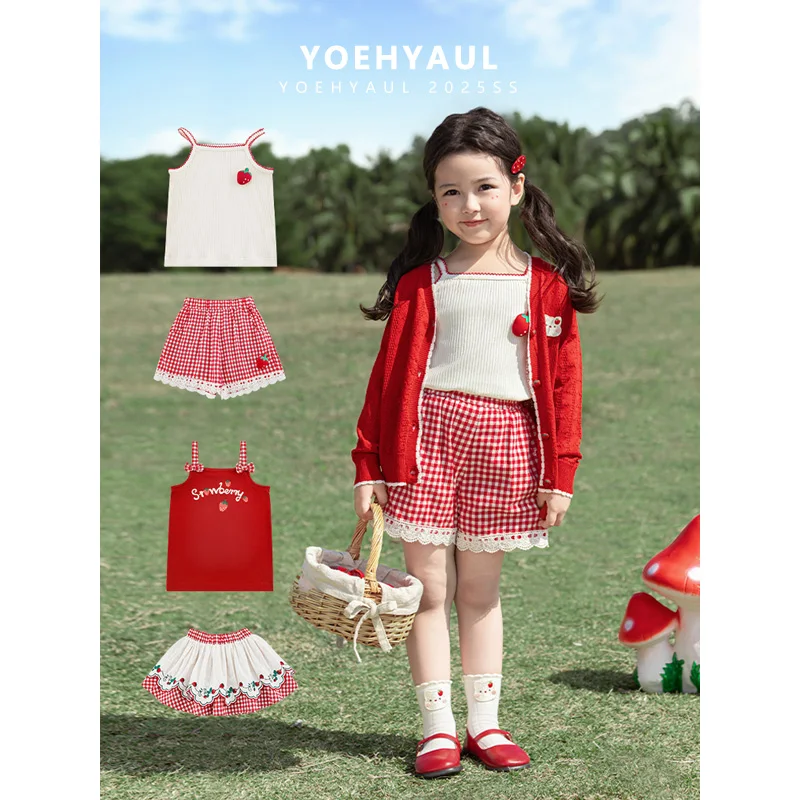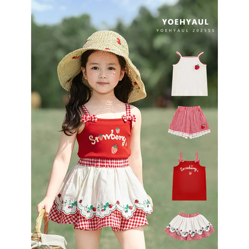 YOEHYAUL X5019 Baby Girls Summer Clothes Set Toddler 2-Piece Set Kids Fashion Clothing Girls T Shirt Shorts Skirt Outfit Clothes