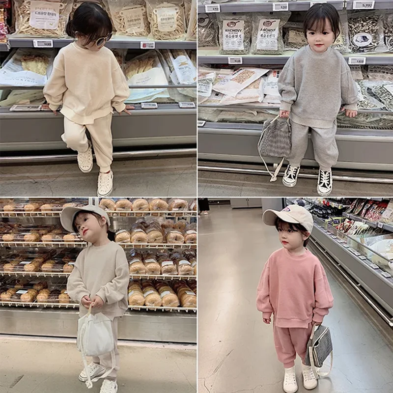 YOEHYAUL Wholesale Baby Boy Girls Toddler Jogger Set Custom Logo Casual Streetwear Children's Girls Sweatshirt Sweatsuit Sets