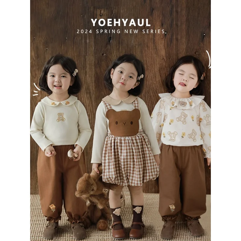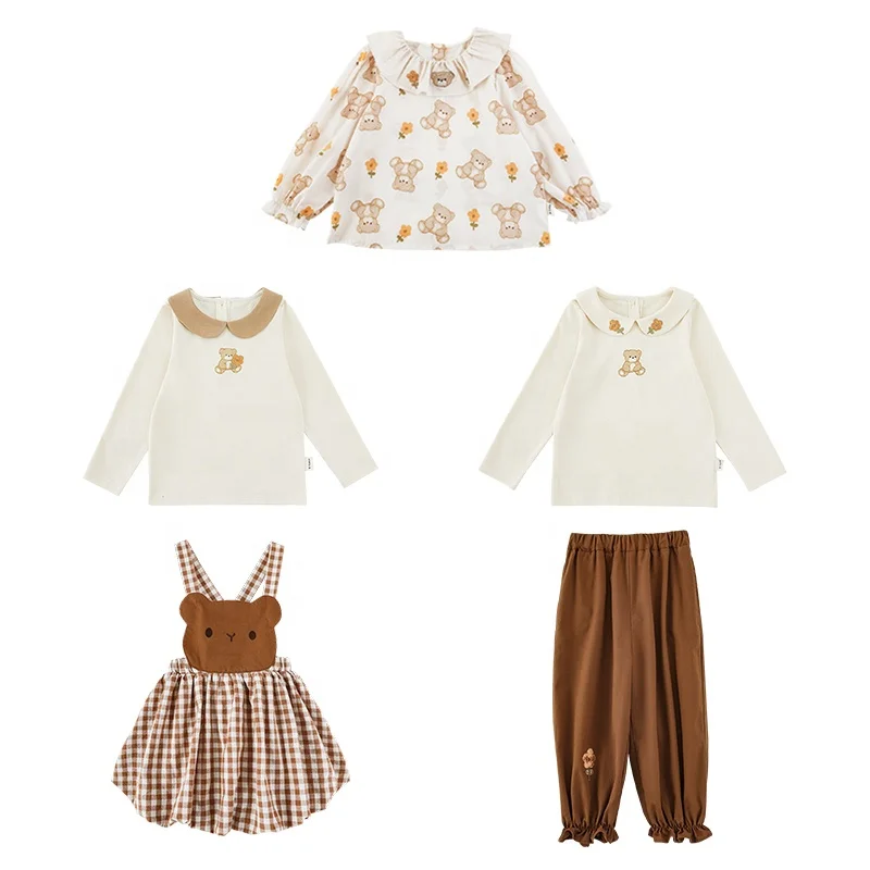 YOEHYAUL High Quality 4 Piece Girls Bear Sets Kids Clothing Luxury Child Children Clothing Set Kids Clothes Wholesale Casual