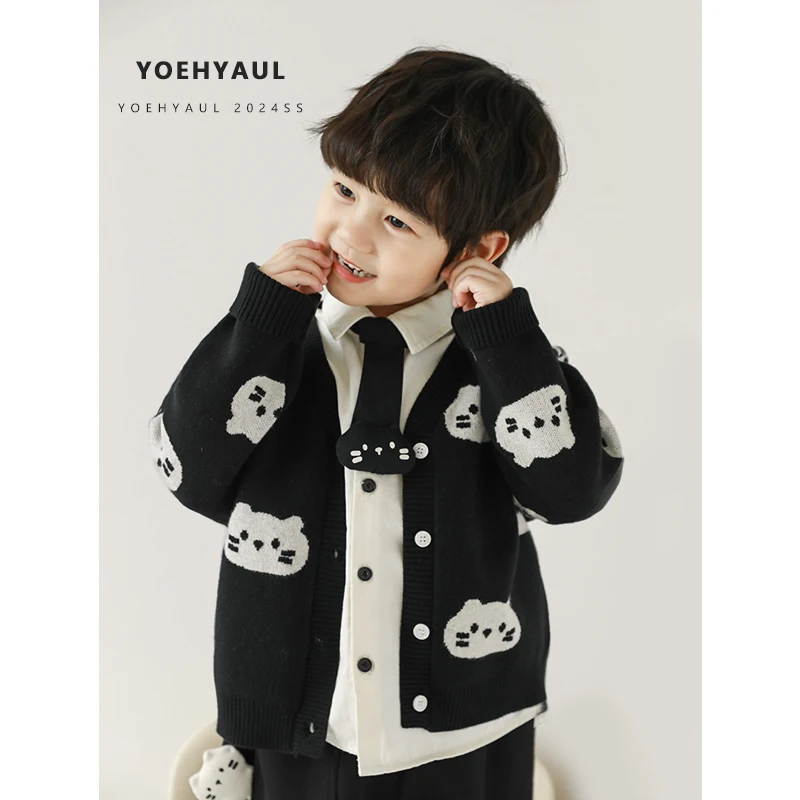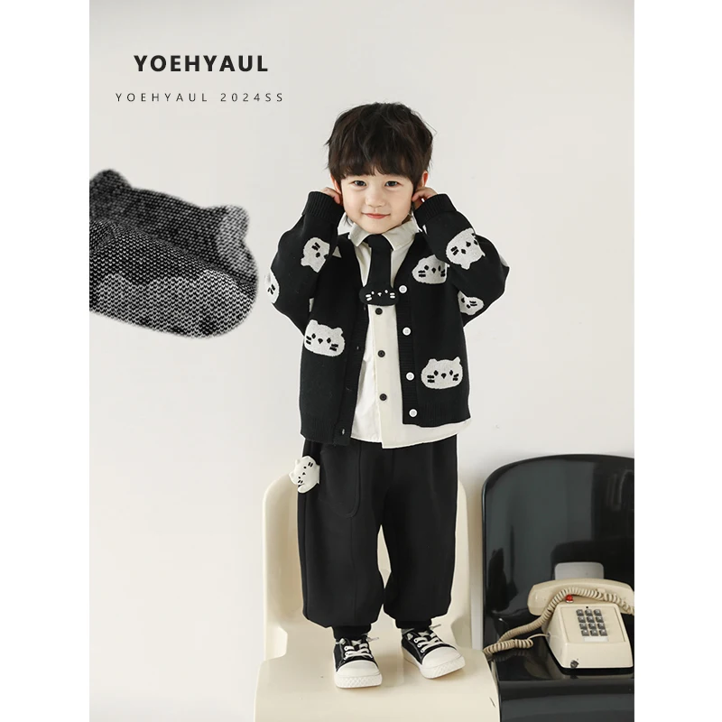 YOEHYAUL N5165 3 Pieces Boys Kids Casual Wear Suit Long Sleeve Sets Baby Boy Child Sweater Cardigan Clothes Sets for Boys