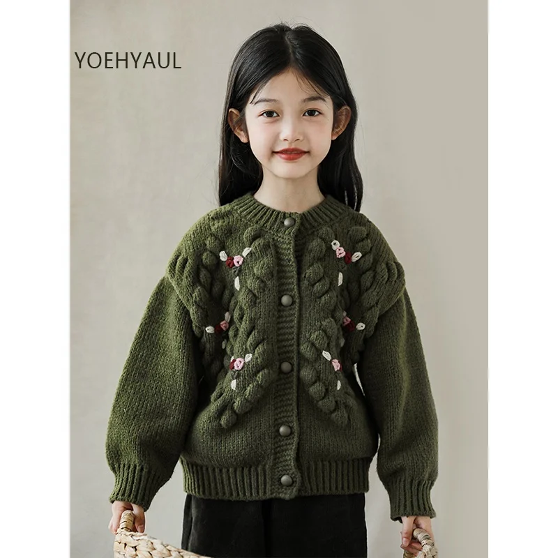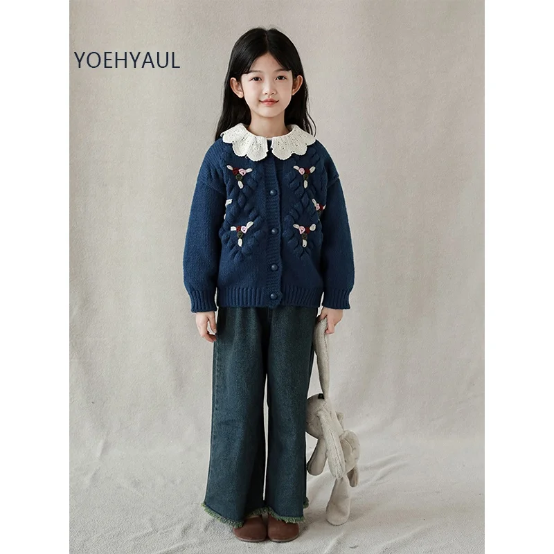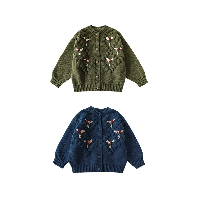 YOEHYAUL Spring &Autumn New Design O-Neck Embroidered Toddler Cardigan Organic Cotton Knitted Baby Sweater Oem for Girls